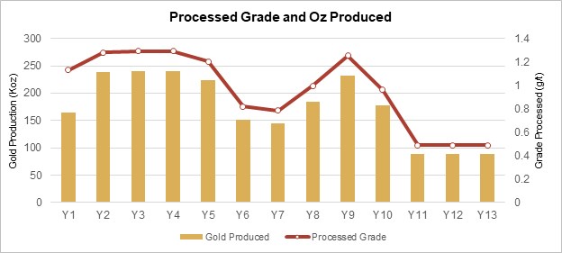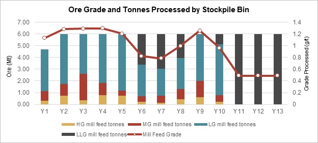 计划有四个库存用于运营。第五个库存将储存品位为0.24-0.40 g/t AU的材料,并将与WRSF位于一起。氧化物材料不在加工计划或矿产储量之列。