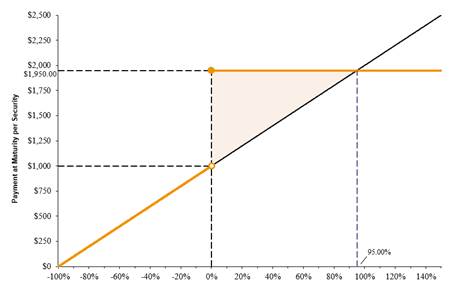下图说明了在证券到期时支付的情况,假定这些证券以前没有被自动赎回,以获得一系列假设的基础回报。