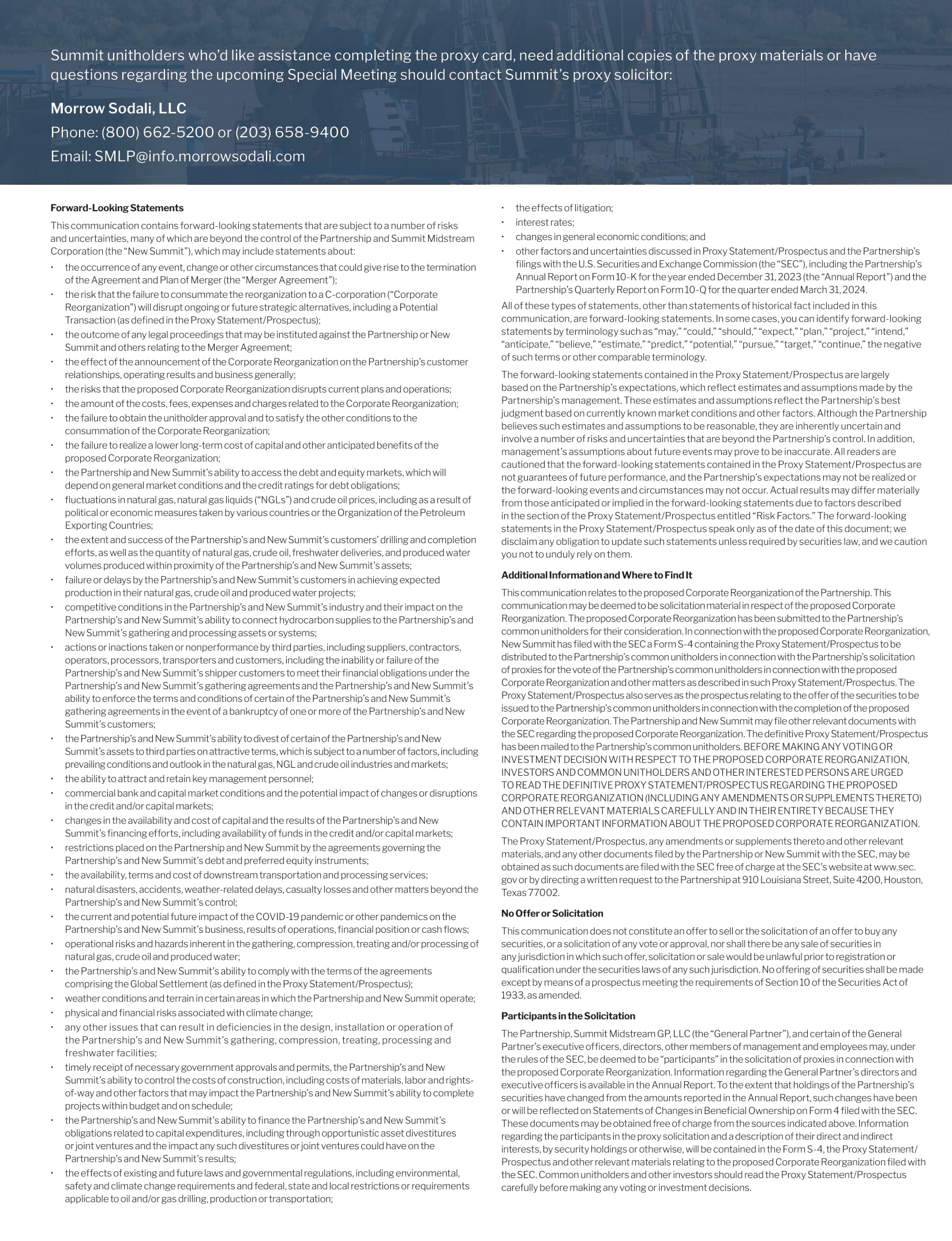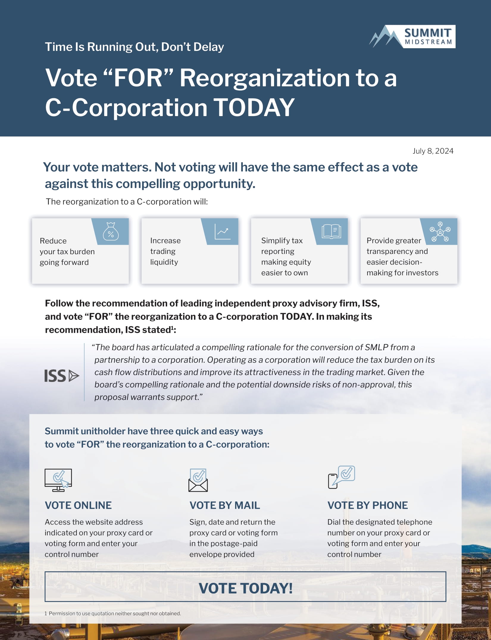 以下文件已于2024年7月8日邮寄给LP共同单位持有人Summit Midstream Partners。