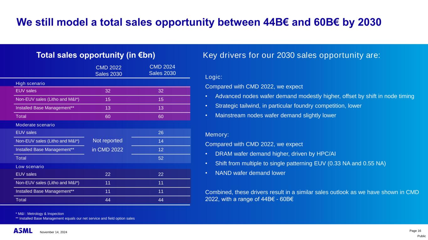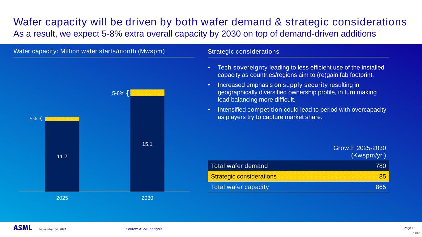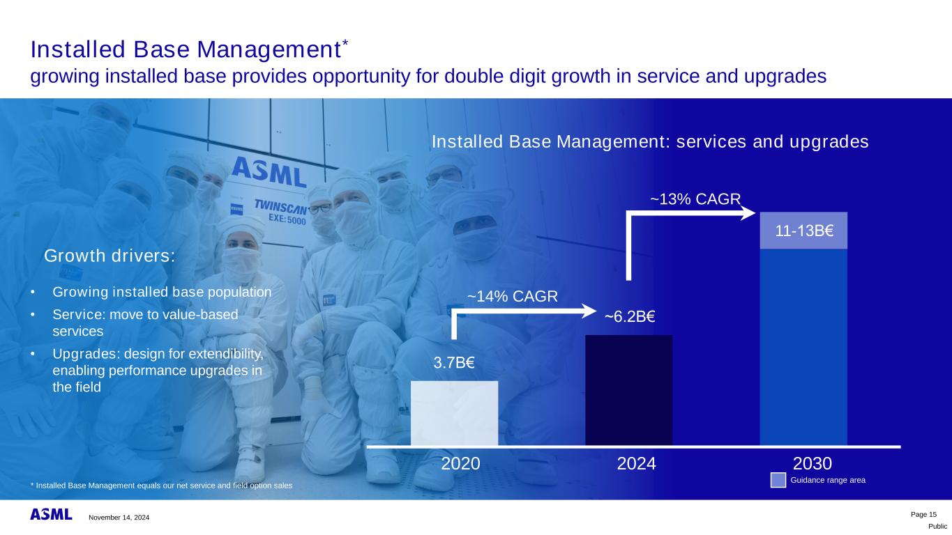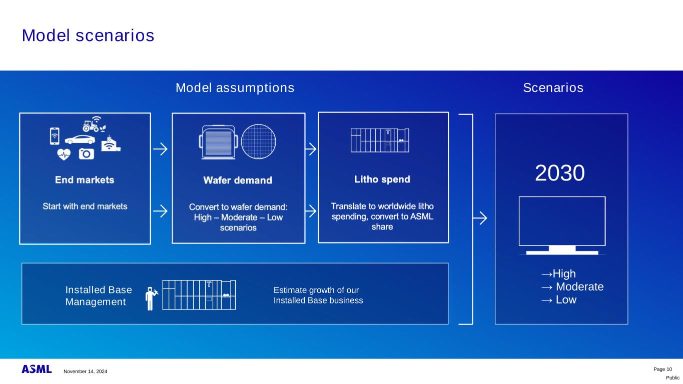 公开第10页我们的已安装基座业务的估计增长已安装基座管理模型假设从终端市场开始转化为全球范围内的litho支出,转换为ASML份额Litho支出转换为晶圆需求:高–中–低场景晶圆需求终端市场场景→高→中→低2030模型场景2024年11月14日