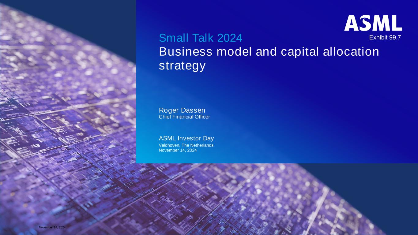 Public 2024年11月14日Roger Dassen商业模式和资本配置策略ASML Investor Day Veldhoven,Netherlands 2024年11月14日首席财务官 Small Talk 2024 附件 99.7