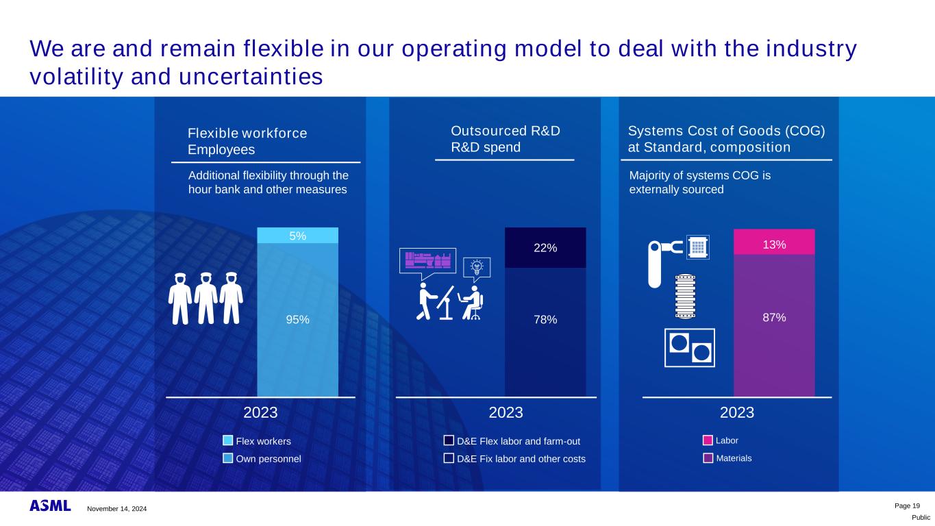 公共2024年11月14日第19页灵活的劳动力员工通过小时银行和其他措施增加灵活性D & E固定劳动力和其他成本D & E Flex劳动力和外包自有人员Flex工人外包研发研发支出系统货物成本(COG)标准,组成大部分系统COG外部来源95% 5% 202378% 22% 202313% 87% 2023我们现在并将继续保持灵活的运营模式,以应对行业的波动性和不确定性劳动力材料