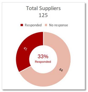 我们共确定了125家一级供应商,这些供应商属于冲突矿产监管目的的范围,并在我们的冲突Minerals调查中进行了联系。这一数字高于往年,原因是纳入了近期收购的供应商。这些供应商中回应率为33%。