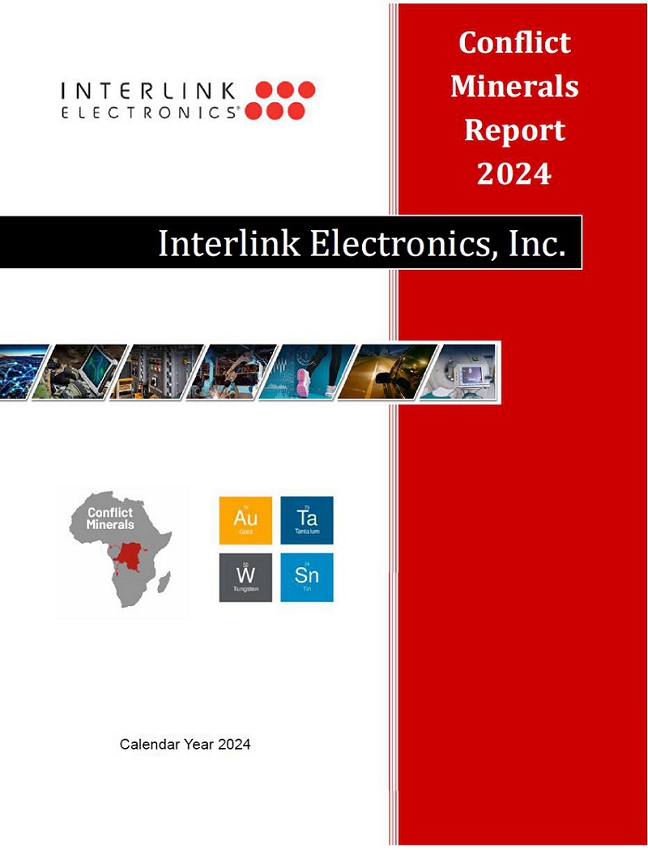 Interlink Electronics,Inc.的这份冲突Minerals报告(“报告”)是根据1934年《证券交易法》第13p-1条规则(“第13p-1条规则”)编制的,报告期为2024年1月1日至2024年12月31日。本报告中使用的,除非另有明确说明或上下文另有要求,所有提及“Interlink”、“我们”、“我们的”、“公司”和类似的提及均指Interlink Electronics,Inc.及其合并子公司。