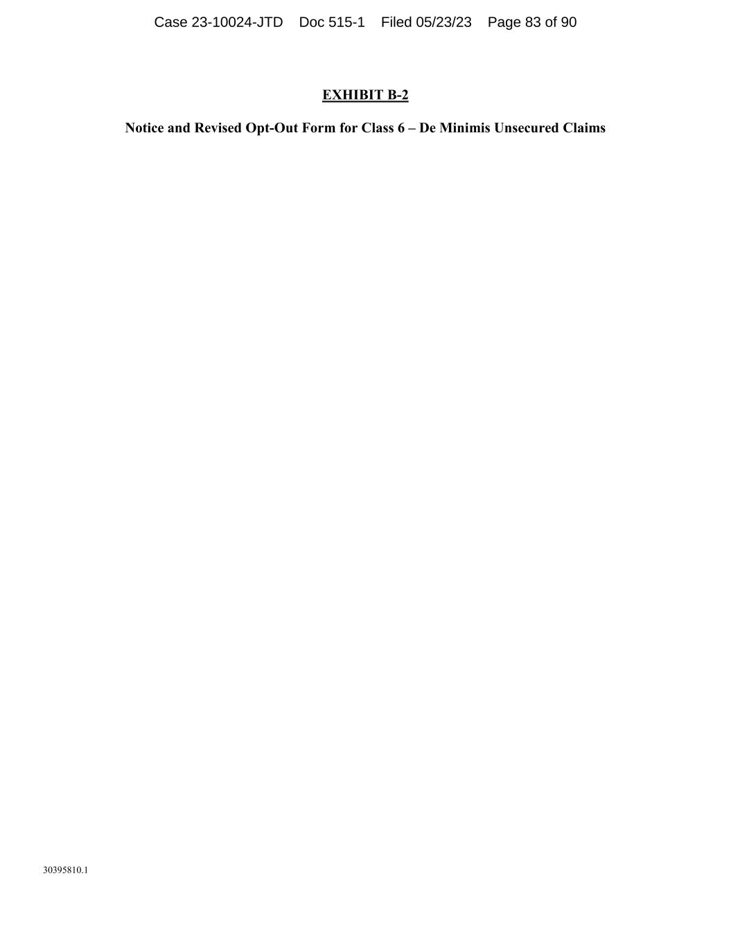 30395810.1第6类的EXHIBIT B-2通知书及经修订的选择退出表格– De Minimis无抵押债权个案23-10024-JTD Doc 515-1提交05/23/23第83页,共90页