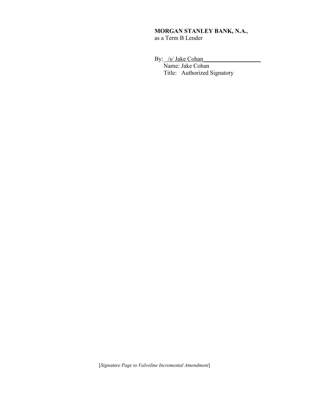 [ Valvoline Incremental Amendment Signature Page ] MORGAN STANLEY BANK,N.A.,as a term B lender by:_/s/Jake Cohan __________________ Name:Jake Cohan title:authorized signatory