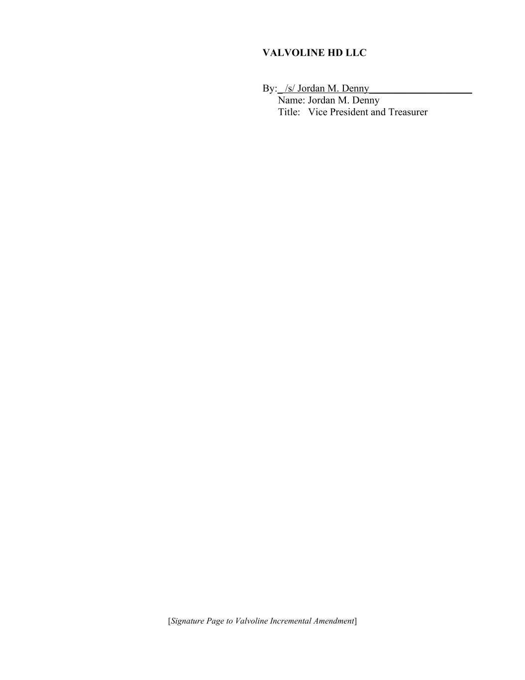 [ Valvoline Incremental Amendment Signature Page ] Valvoline HD LLC by:_/s/Jordan M. Denny ______________________ Name:Jordan M. Denny Title:Vice President and Treasurer