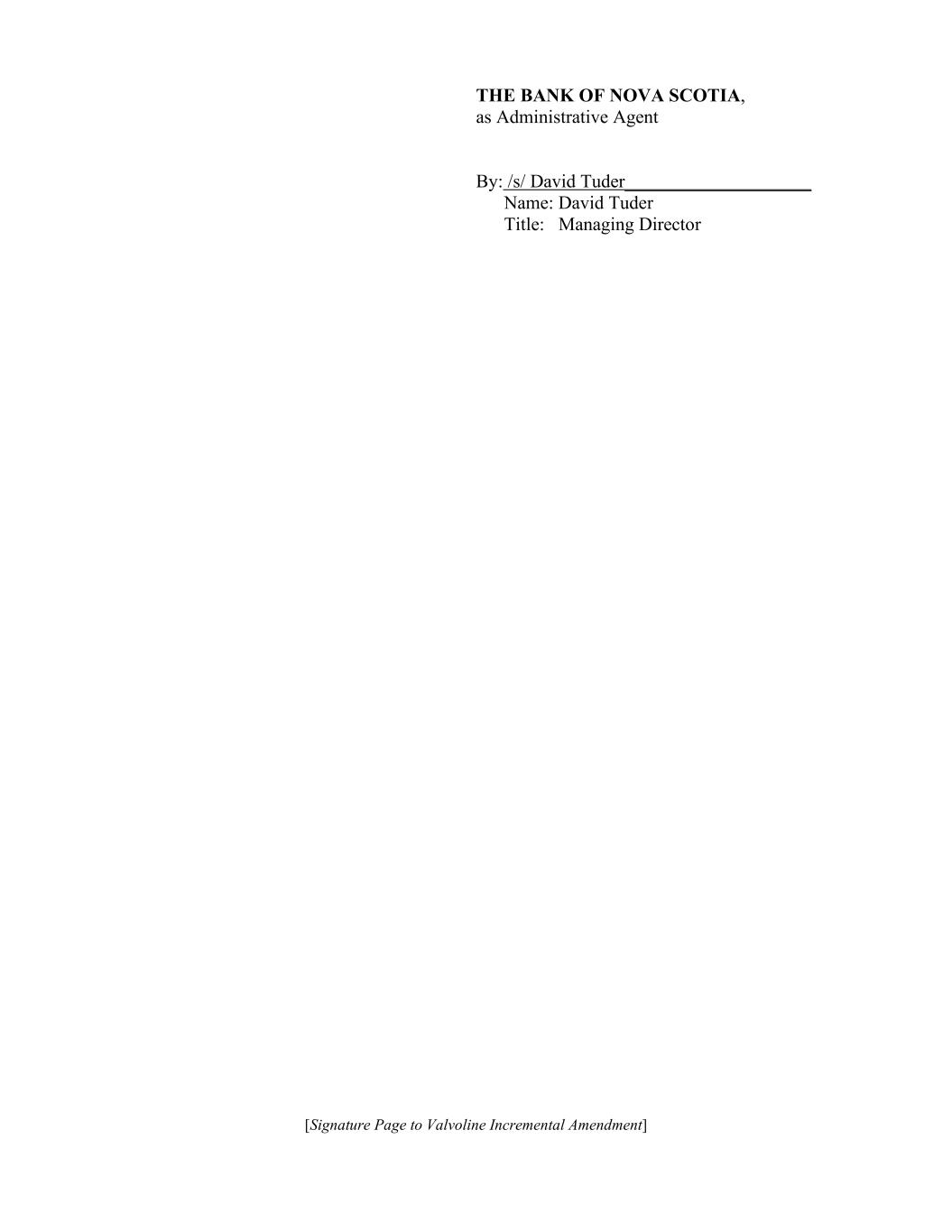 【Valvoline Incremental Amendment签名页】NOVA SCOTIA银行,作为行政代理人:/s/David Tuder ______________________姓名:David Tuder职务:董事总经理