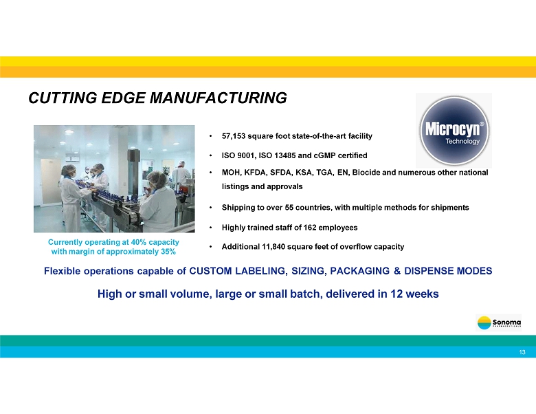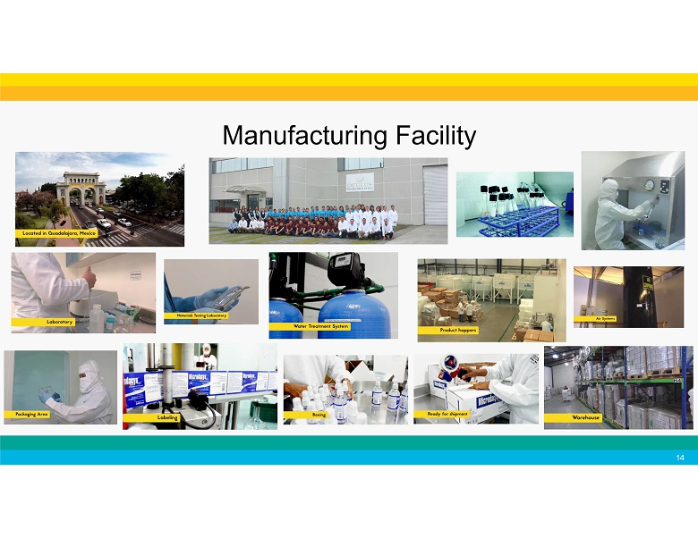 • 57,153平方英尺的最先进设施• ISO 9001、ISO 13485和cGMP认证• MOH、KFDA、SFDA、KSA、TGA、EN、Biocide等众多国家上市和批准•运往超过55个国家,采用多种方式发货•训练有素的162名员工•额外的11,840平方英尺溢出容量切割边缘制造灵活操作,能够定制标签、尺寸、包装和分散模式的高或小批量、大或小批量,12周内交付目前以40%的产能运行,利润率约为35% 13
