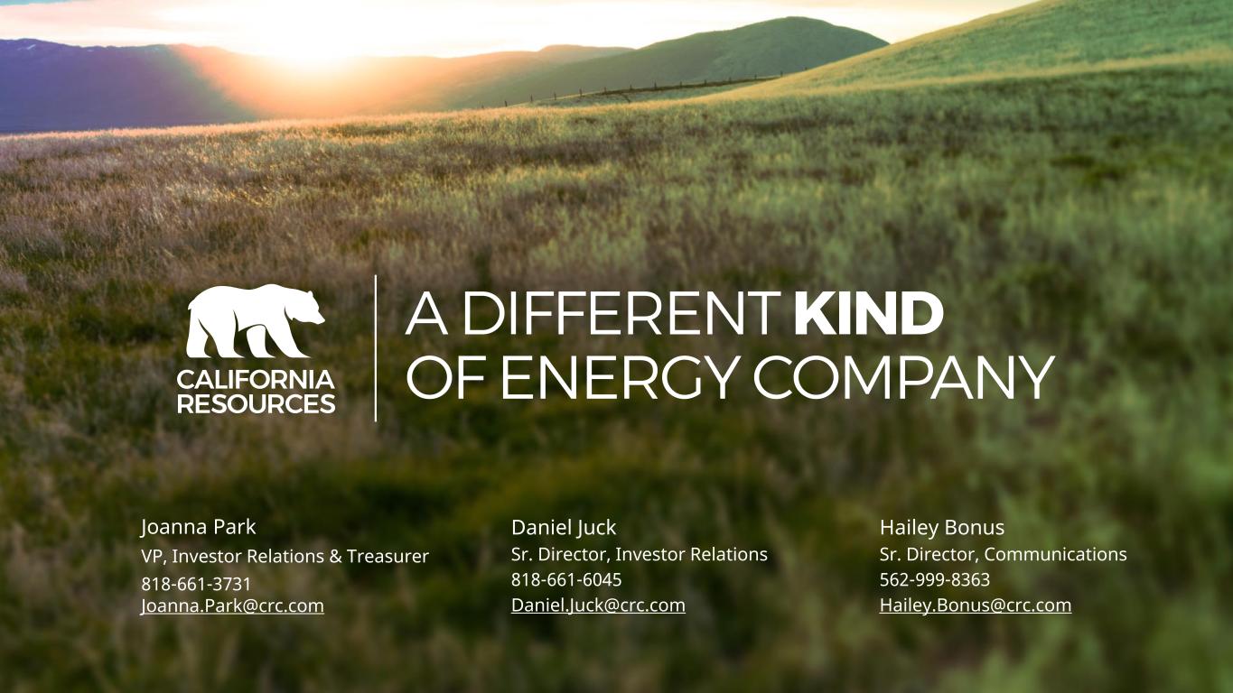 Joanna Park投资者关系副总裁兼财务主管818-661-3731 Joanna.Park@crc.com Daniel Juck投资者关系高级总监818-661-6045 Daniel.Juck@crc.com Hailey Bonus传播高级总监562-999-8363 Hailey.Bonus@crc.com