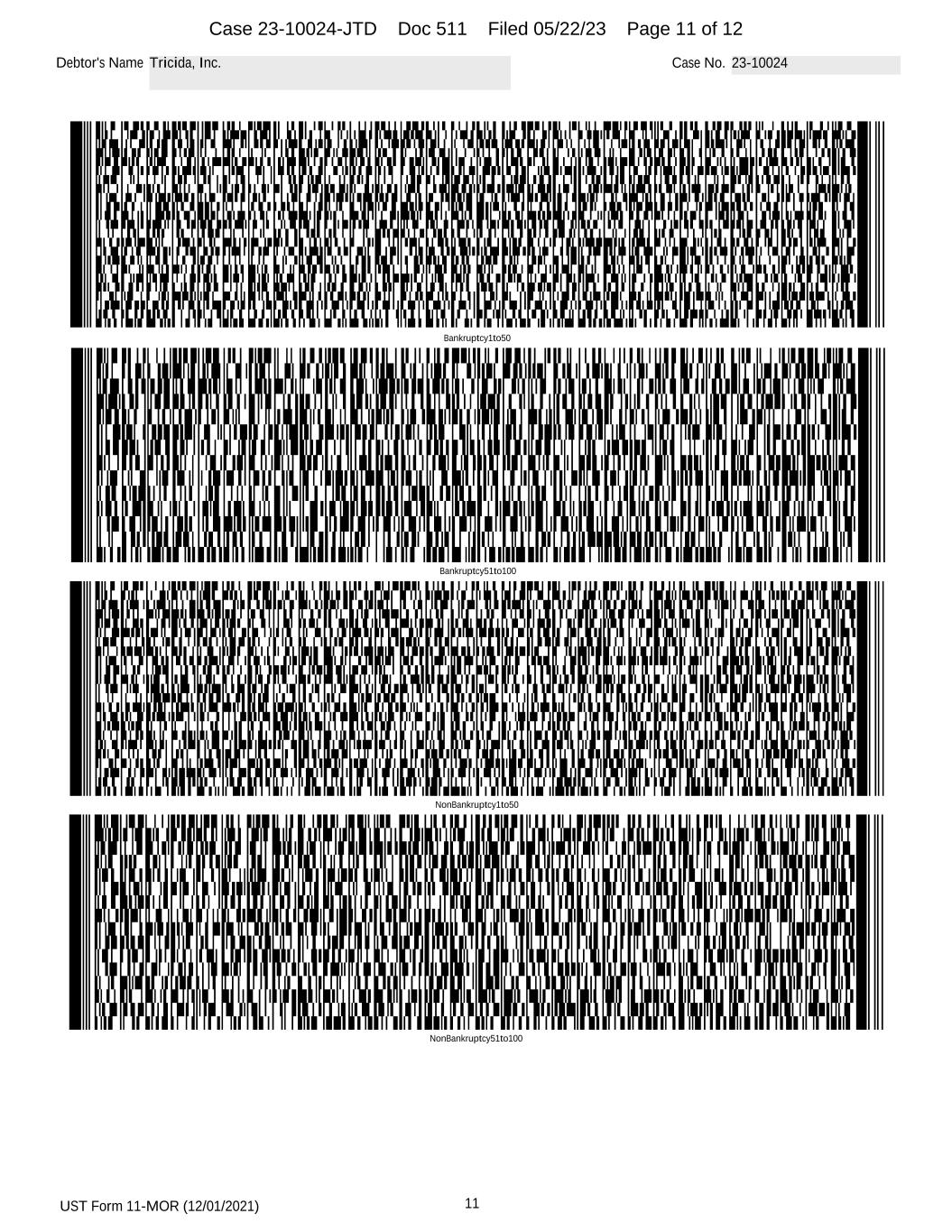 UST表格11-MOR(12/01/2021)11债务人名称Tricida, Inc.案件编号23-10024 Bankruptcy51to100 NonBankruptcy1to50 NonBankruptcy51to100 Bankruptcy1to50案件编号23-10024-JTD Doc 511提交05/22/23第11页,共12页
