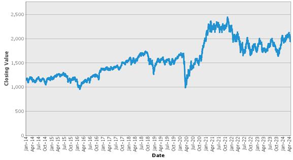 | 标普 500®指数–历史收盘值 2014年1月2日至2024年4月22日 |