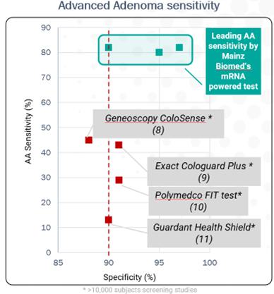 CRC的早期筛查有可能对其治疗和预防产生巨大影响,并最终挽救生命。例如,《美国国家癌症研究所杂志》在2022年报道称,对晚期腺瘤(“AA”)(一种通常归因于CRC的癌前息肉)进行敏感性为10%的诊断测试可以将45岁以上成年人的死亡率降低47%,对AA敏感性为76%的诊断测试可以将45岁以上成年人的死亡率降低67%。4目前大多数CRC筛查项目建议在50岁时开始筛查。然而,降低这一起始年龄的趋势越来越明显。例如,FDA最近建议从45岁开始进行CRC筛查。2023年,美国癌症协会强调了CRC在年轻个体中的快速进展,指出55岁以下人群的CRC诊断从1995年的11%增加到2019年的20%。鉴于CRC在年轻人群中的流行率不断上升,我们预计筛查指南将继续降低起始年龄,特别是对于像ColoAlert这样可以在早期发现癌症的方法。支持CRC筛查的其他因素包括CRC的家族史、肥胖、肠易激综合征(IBS)、炎症性肠病(IBD)、大量食用红肉、酒精和尼古丁等风险因素,以及乳腺癌或2型糖尿病等已有疾病。