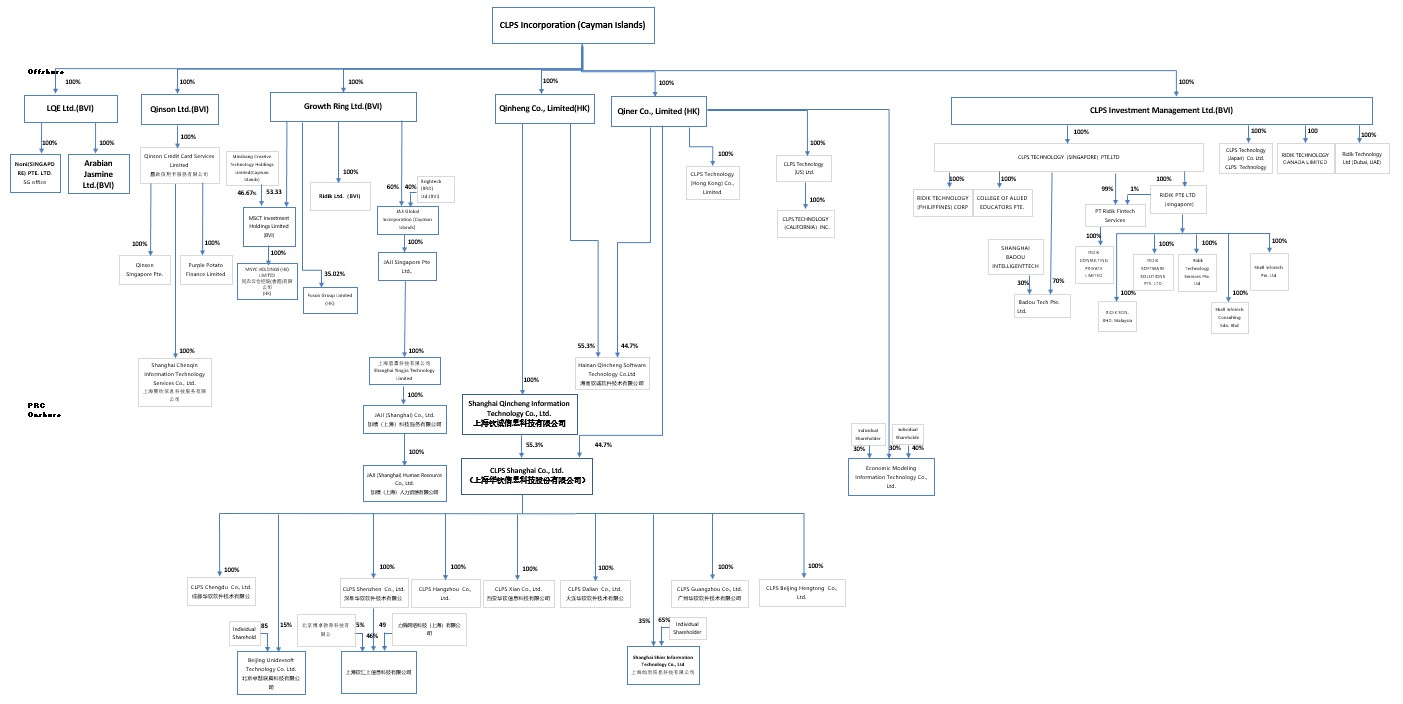 | ● | “CLPS广东智创”指CLPS广东智创软件技术股份有限公司一家中国公司; | |