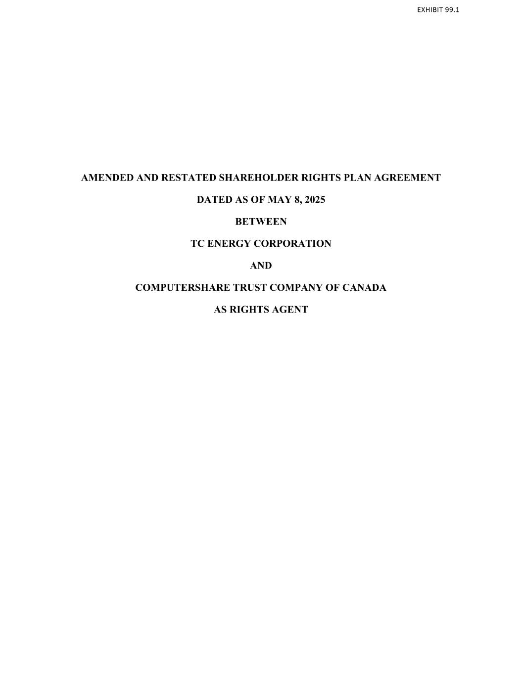 截至2025年5月8日TC Energy Corporation与加拿大计算机股份信托公司作为权利代理的经修订和重述的股东权利计划协议展览99.1