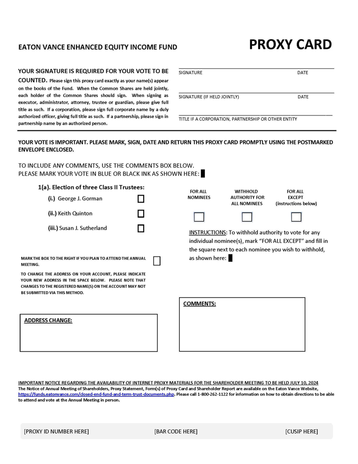 关于2024年7月10日(星期三)召开的年度股东大会代理材料备查的重要通知:年度股东大会通知、代理声明、代理卡和股东报告可在Eaton Vance网站https://funds.eatonvance.com/closed-end-fund-and-term-trust-documents.php查阅。
