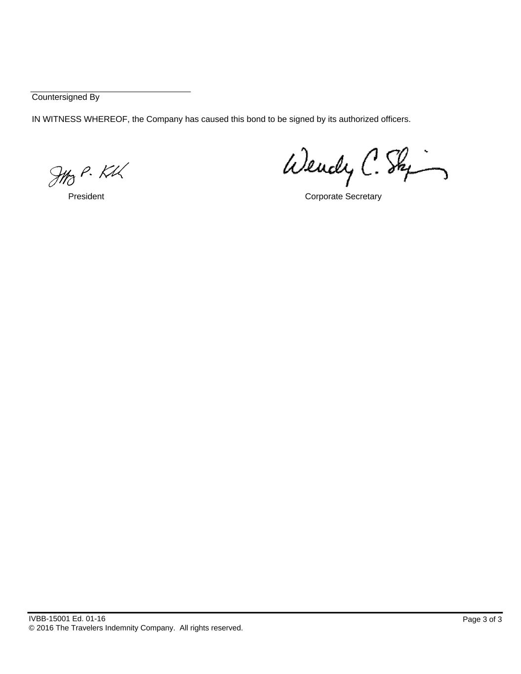 IVBB-15001版。01-16©2016 The Travelers Indemnity Company。版权所有。第3页,共3页,由公司授权人员签署,并由其作为证人在何处签署。总裁企业秘书