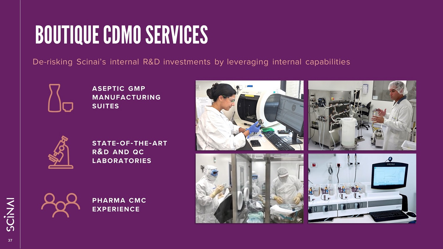 点击编辑Master Title STYLE 37 BOUTIQUE CDMO服务去风险Scinai通过利用内部能力进行内部研发投资ASEPTIC GMP Manufacturing SUITES STATE-of the ART R & D and QC Laboratories Pharma CMC Experience