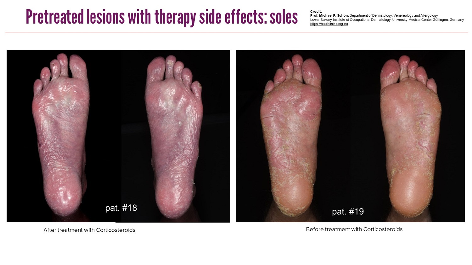 点击编辑大师标题风格预发病变有治疗副作用:鞋底拍打。# 18拍。# 19皮质激素治疗后皮质激素治疗前图片来源:Michael P. Sch ö n教授,德国哥廷根大学医学中心下萨克森州职业皮肤病研究所皮肤病学、性病学和过敏科https://hautklinik.umg.eu