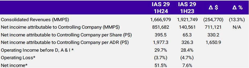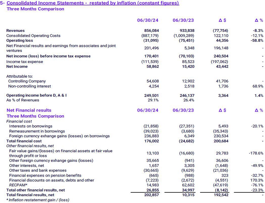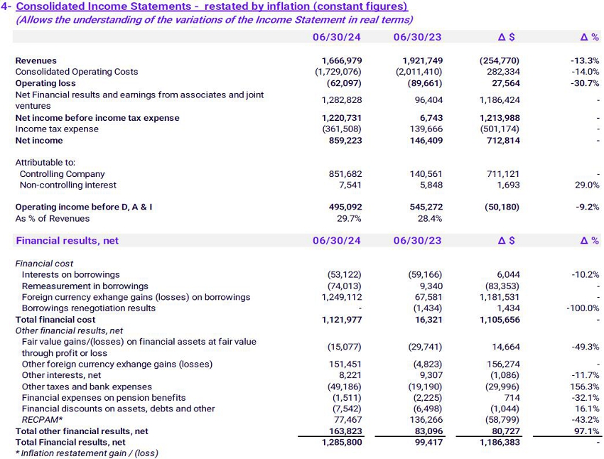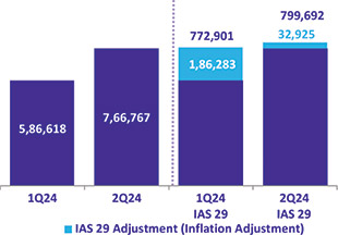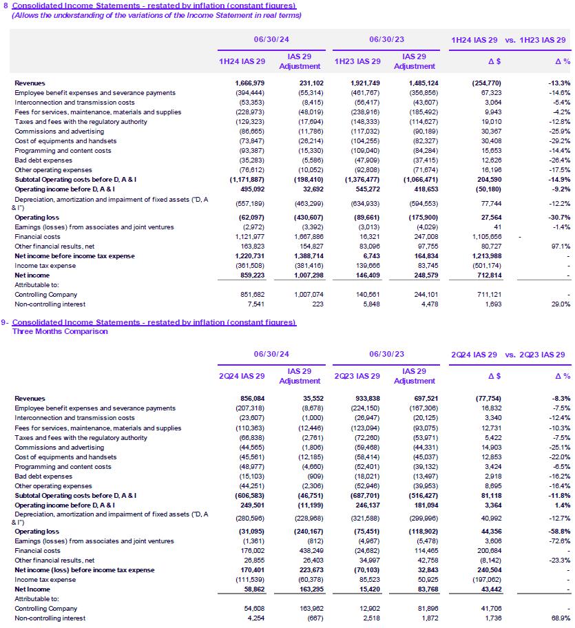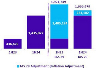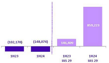 | · | 需要注意的是,在比较基础上(2023年6月)提出的结果包括截至2024年6月的同比通货膨胀的影响,即271.5%。 |