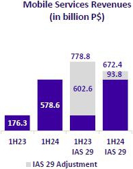 | · | 互联和传输成本(包括漫游、国际结算费用和电路租赁):5.3353亿P美元(-5.4 % vs. 1H23)。 |