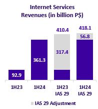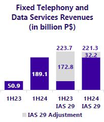 1H24期间,服务收入较1H23下降11.7%,主要是由于公司实施的价格上涨对收入的净影响低于同比通货膨胀率,后者为271.5%。这是考虑到在激烈的市场竞争中给予客户更高水平的折扣以维持客户群。然而,观察到服务收入的实际价值复苏趋势,在2Q24期间有所加强(-6.7 % vs. 2Q23和+ 3.5% vs. 1Q24 –见第2页的图表2)。