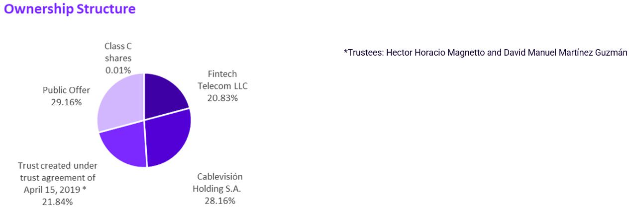 本文件可能包含可能构成前瞻性陈述的陈述,包括但不限于(i)公司对其未来业绩、收入、收入、每股收益、资本支出、股息、流动性和资本结构的预期;(ii)公司与Cablevisi ó n S.A.合并(或合并)预期产生的持续协同效应;(iii)公司业务战略的实施;(iv)阿根廷、巴拉圭电信和电缆市场的动态变化和增长,乌拉圭和美国;(v)公司对新技术和增强技术的展望;(vi)在竞争环境中运营的影响;(vii)行业状况;(viii)某些法律诉讼的结果;以及(ix)监管和法律发展。前瞻性陈述可以通过“预期”、“相信”、“估计”、“预期”、“打算”、“计划”、“项目”、“将”、“可能”和“应该”等词语或其他类似表达方式来识别。前瞻性陈述并非对未来业绩的保证,涉及某些难以预测的风险和不确定性。此外,某些前瞻性陈述是基于对未来事件的假设,而这些假设可能不会被证明是准确的。许多因素可能导致公司的实际结果、业绩或成就与前瞻性陈述可能明示或暗示的任何未来结果、业绩或成就存在重大差异。这些因素包括(其中包括)(i)公司成功实施我们的业务战略以及实现合并产生的协同效应的能力;(ii)公司推出能够促进业务增长的新产品和服务的能力;(iii)与阿根廷、巴拉圭、乌拉圭和美国的政治和经济状况有关的不确定性,包括阿根廷新政府的政策;(iv)政治事态发展,包括阿根廷新政府的政策,对阿根廷公司证券需求的影响;(v)通货膨胀、比索贬值、阿根廷、巴拉圭和乌拉圭的瓜拉尼和乌拉圭比索及汇率风险;(vi)限制将阿根廷或乌拉圭比索或巴拉圭瓜拉尼兑换成外币并将资金转移到国外的能力;(vii)货币和兑换措施或限制对我们进入国际市场的能力以及我们偿还以美元计价的债务的能力的影响;(viii)我们实际或潜在客户的信誉;(ix)国有化、征用和/或政府增加对公司的干预;(x)技术变革;(xi)法律或监管事项的影响,对当前或未来法规或改革的解释发生变化,以及公司经营所处的法律或监管环境发生变化,包括对公司供应商产生影响的其他司法管辖区(例如美国)的制裁制度等监管发展;(xii)竞争加剧的影响;(xiii)依赖第三方制作的内容;(xiv)增加公司供应的成本;(xv)无法以保持竞争力所需的合理条款为资本支出提供资金;(xvi)波动,无论是季节性的还是因应不利的宏观经济发展,在广告需求方面;(xvii)公司在未来竞争和发展我们业务的能力;(xviii)国家或国际对电信技术转让或使用的限制增加的影响;(xix)新冠疫情爆发对全球经济的影响,特别是对我们经营所在国家的经济的影响,以及对我们的运营和财务业绩的影响。其中许多因素具有宏观经济和监管性质,因此超出了公司管理层的控制范围。如果这些风险或不确定性中的一项或多项成为现实,或基础假设被证明不正确,实际结果可能与本文所述的预期、相信、估计、预期、打算、计划或预测的结果存在重大差异。公司不打算也不承担更新本文件所载前瞻性陈述的任何义务。这些前瞻性陈述是基于一些假设和其他重要因素,这些因素可能导致我们的实际结果、业绩或成就与这些前瞻性陈述明示或暗示的我们未来的结果、业绩或成就存在重大差异。鼓励读者查阅公司关于表格20-F的年度报告和关于表格6-K的定期申报,这些定期向美国证券交易委员会提交或提交, 以及定期向阿根廷证券交易委员会(Comisi ó n Nacional de Valores)和布宜诺斯艾利斯证券交易所(Bolsas y Mercados Argentinos)提交的陈述,以获得有关公司面临的风险和不确定性的进一步信息。