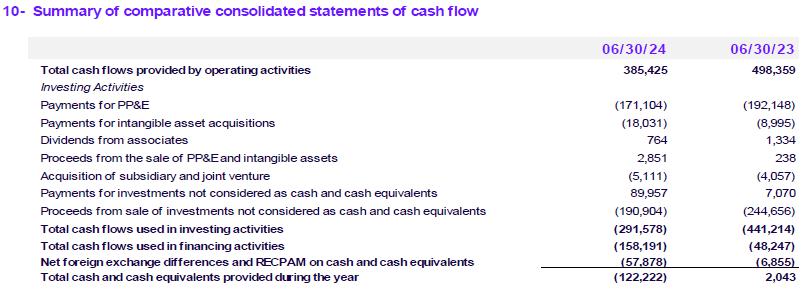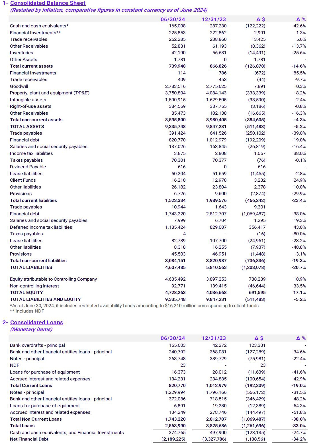 2024年6月,完成了1160万美元(截至2024年6月30日相当于105.08亿比索)的支付,将于2030年5月到期。已拨付资金按半年期SOF利率加6.65个百分点的差额计提补偿性利息。
