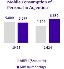 1H24,阿根廷移动服务收入达6.08 129亿坡元(-1.09 912亿坡元或-15.3 % vs. 1H23)。每用户平均每月收入(“ARPU”)在1H24期间为4,743.5便士(而1H23为5,800.0便士)。以截至2024年6月30日的当前计量单位计算,重述产生的影响,计入ARPU的1H24和1H23分别为646.4便士和4,483.6便士。1H24的平均月流失率为1.6%(而1H23的平均流失率为1.8%)。