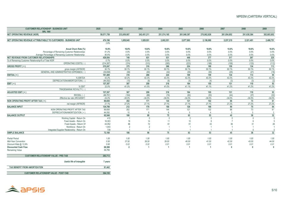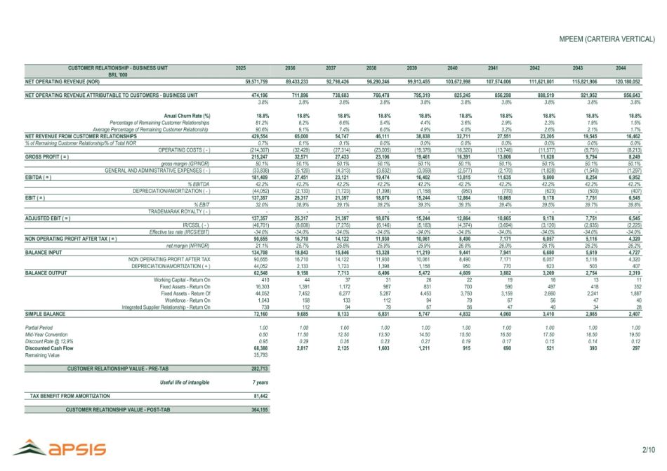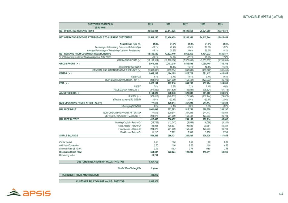C O N F I D E N T I A L BRF 2034E 2033E 2032E 2031E 2030E 2029E 2028E 2027E 2026E 2025E单位Marfrig-2 a建议119,028111,411104,28197,60791,36185,51480,44676,09770,87765,371净收入R $ mi 6.8% 6.8% 6.8% 6.8% 6.3% 5.7% 7.4% 8.4% 6.5%增长% 14,37213,27612,19311,00310,0879,5609,5149,48710,3809,855 EBITDA R $ mi 12.1% 11.9% 11.7% 11.3% 11.0% 11.2% 11.8% 12.5% 14.6% 15.1% Margin %(4,637)(4,061)(3,522)(4,7125,0926,4386,451 EBIT R $ mi(2,619)(2,479)(2,333)(2,148)(2,029)(1,313)(1,267)(1,370)(1,732)(1,735)(-)已缴税款R $ mi 26.9% 26.9% 26.9% 26.9% 26.9% 26.9% 26.9% 26.9% 26.9% 26.9% 26.9% 26.9% 26.9% 26.9%有效税率% 7,1166,7366,3395,8375,5133,5683,4443,7224,7074,715 NOPAT R $ mi 4,6374,0613,5223,0172,5454,6794,8024,3943,9413,405(+)折旧R $ mi 1191026994,1514,2044,4863,6702,736 R $ mi自由现金流到公司2034E来源:公司3 2033E 2032E 2031E 2030E 2029E 2028E 2027E 2026E 2025E BRF:比较预测80,34975,94470,82065,371净收入R $ mi 6.8% 6.8% 6.8% 6.8% 6.4% 5.8% 7.2% 8.3% 6.5%增长% 16,59015,61514,57513,64912,78211,96911,02810,91011,0449,855 EBITDA R $ mi 14.0% 14.0% 14.0% 14.0% 14.0% 13.7% 14.411,55811,05710,63410,2397,2726,2336,5227,1086,456 EBIT R $ mi(3,217)(3,109)(2,974)(2,861)(2,754)(1,956)(1,677)(1,754)(1,912)(1,737)(-)已缴税款R $ mi 26.9% 26.9% 26.9% 26.9% 26.9% 26.9% 26.9%有效税率% 8,7428,4498,0827,7747,4855,3164,5564,7675,1964,719 NOPAT R $ mi 4,6324,0573,5193,0152,5434,6974,7954,3883,9363,400(+)折旧R $7,5787,0606,5096,0195,5615,7925,3075,4534,0902,734 R $ mi自由现金流至公司