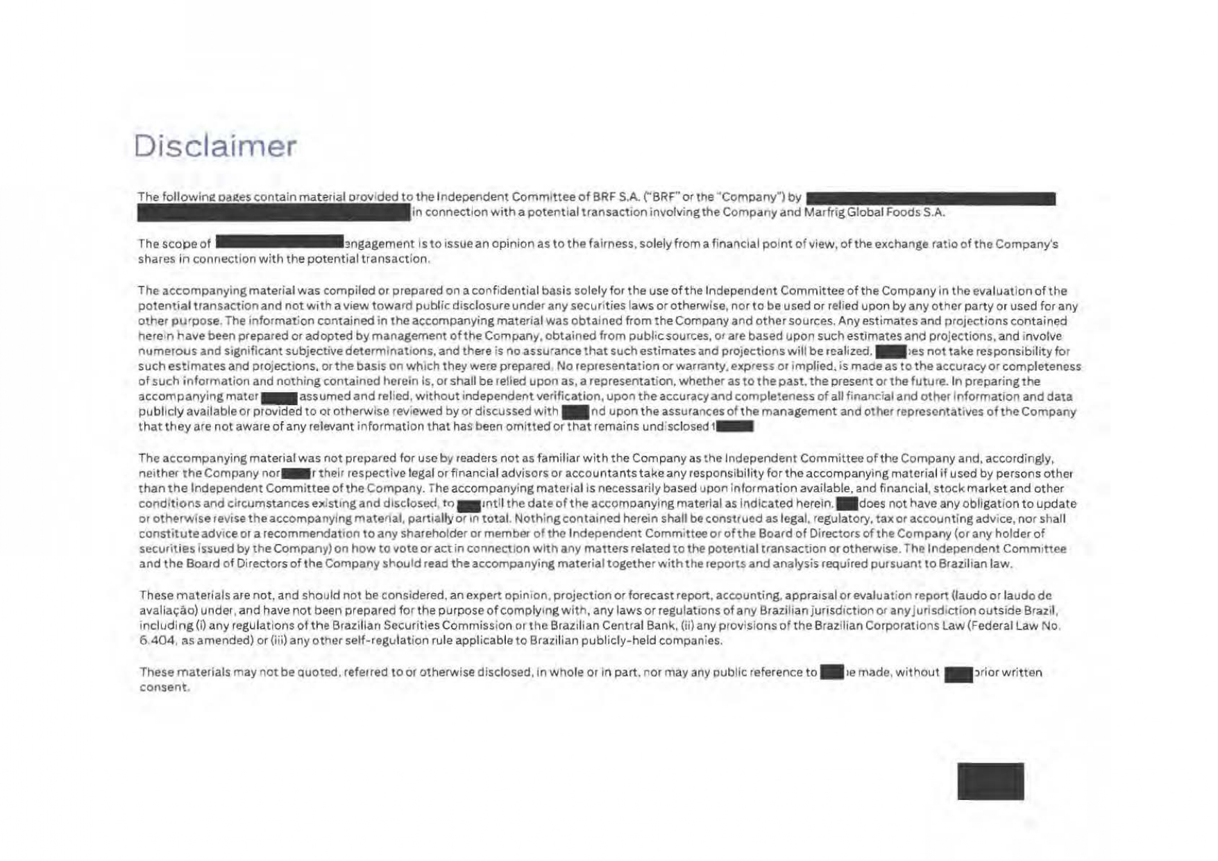 MGF独立委员会财务顾问于2025年5月2日向BRF独立委员会作出的陈述。