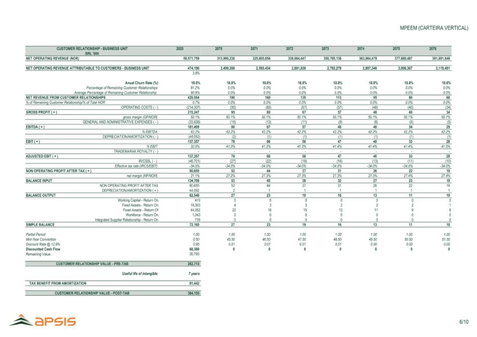 C O N F I D E N T I A L Marfrig North America:比较预测Marfrig North America 2034E 2033E 2032E 2031E 2030E 2029E 2028E 2027E 2026E 2025E单位BRF-反提案101,08297,63794,3109791,09787,99384,99483,73880,06378,23475,968 R $ mi净收入3.5% 3.5% 3.5% 3.5% 1.5% 4.6% 4.6% 2.3% 3.0% 13.5% %增长5,0544,8824,7164,5864,400,2503,5211,120,1231,212 R $ mi EBITDA 5.0% 5.0% 5.0% 5.0% 5.0% 4.2% 1.4% 1.4% 1.6% %%利润率(1,237)(1,088)(944)(805)折旧3,8173,7943,7723,7813,0442,8062,204(74)47252 R $ mi息税前利润(916)(911)(905)(907)(731)(674)(529)18(11)0 R $ mi(-)已缴税24.0% 24.0% 24.0% 24.0% 24.0% 24.0% 24.0% 24.0% 24.0% 0.0% %%有效税率2,9012,8832,8662,8742,3132,1331,675(56)36252 R $ mi NOPAT 1,2371,0889448051,3561,4431,3171,1941,075960 R $ mi(+)折旧(176)(168)(162)(154)(148)(75)(139)(101)(126)(45)CAPEX 2,4462,3382,2332,1582,201,2261,597(164)(188)(387)R $ mi自由现金流至公司2034E 2033E 2032E 2031E 2030E 2029E 2028E 2027E 2026E 2025E单位Marfrig-2 a建议116,758110,998104,999998,35191,67585,03683,95380,40278,36675,968 R $ mi净收入5.2% 5.7% 6.8% 7.3% 7.8% 1.3% 4.4% 2.6% 3.2% 16.0%增长8,93510,8469,6908,5027,4264,9653,5301,1251,1251,212 R $ mi EBITDA 7.7% 9.8% 9.2% 8.6% 8.1% 5.8% 4.2% 1.4% 1.4% 1.6% %% margin(1,302)7,6339,7158,7217,6856,0663,5202,212(70)49252 R $ mi息税前利润(1,832)(2,332)(2,093)(1,844)(1,456)(845)(531)-(12)(61)R $ mi(-)已缴税款24.0% 24.0% 24.0% 24.0% 24.0% 24.0% 24.0% 24.0% 24.0% %有效税率5,8017,3836,6285,8404,6102,6751,681(70)37192 R $ mi NOPAT 1,3021,1319698171,3601,4451,3181,1941,075960 R $ mi(+)折旧(317)(289)(308)(303)(284)(85CAPEX 5,0346,5615,7144,8794,3112,7601,586(226)(305)(447)R $ mi自由现金流到公司来源:公司7