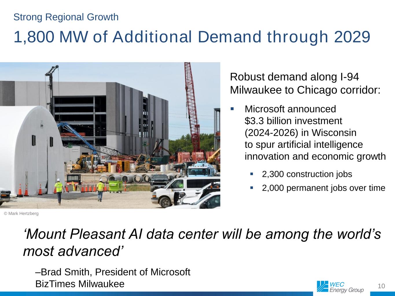 2029年将带来10个1,800兆瓦的额外需求‘Mount Pleasant AI数据中心将跻身世界先进行列’–微软BizTimes Milwaukee总裁Brad Smith区域增长强劲沿着I-94 Milwaukee到芝加哥走廊的需求强劲:微软宣布在威斯康星州投资33亿美元(2024-2026年),以刺激人工智能创新和经济增长,2,300个建筑工作岗位,随着时间的推移,2,000个永久性工作岗位©马克·赫茨伯格