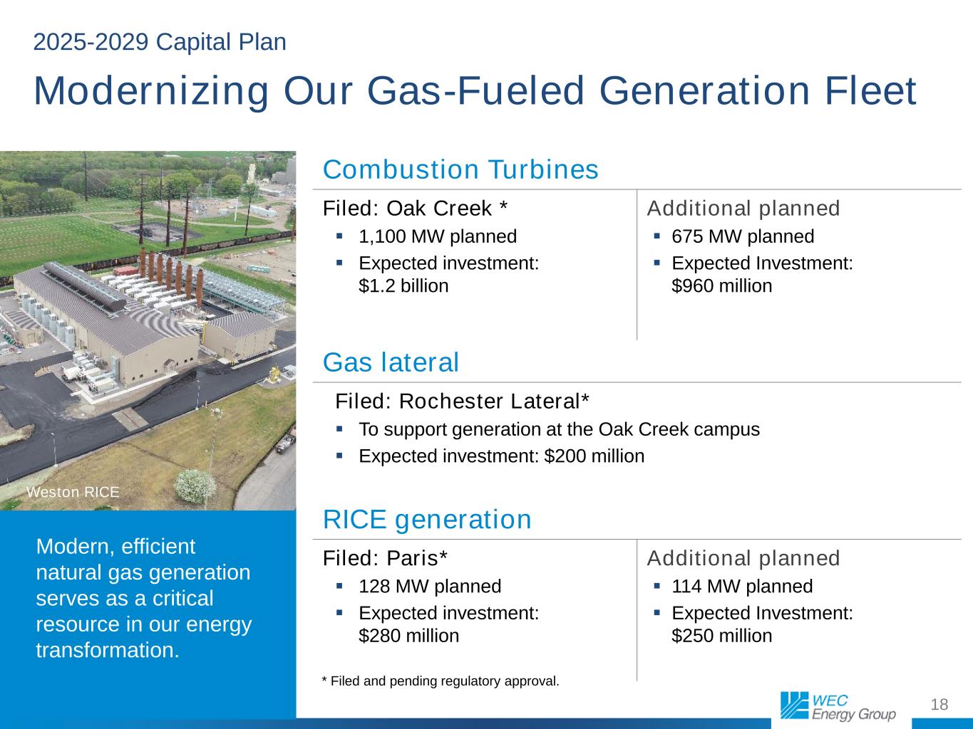 17太阳能总计2,900兆瓦55亿美元电池存储总计565兆瓦9亿美元风能总计900兆瓦27亿美元总计4,365兆瓦91亿美元2025-2029年计划包括:计划建造和拥有4,300兆瓦——将我们的无碳发电量增加四倍以上。向受监管的可再生能源投资91亿美元