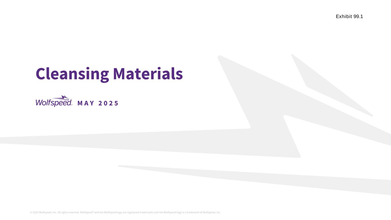 ©2025 Wolfspeed, Inc.版权所有。Wolfspeed®且Wolfspeed标识为注册商标且Wolfspeed标识为附件 99.1的商标Wolfspeed, Inc. MA Y 2025清洁材料