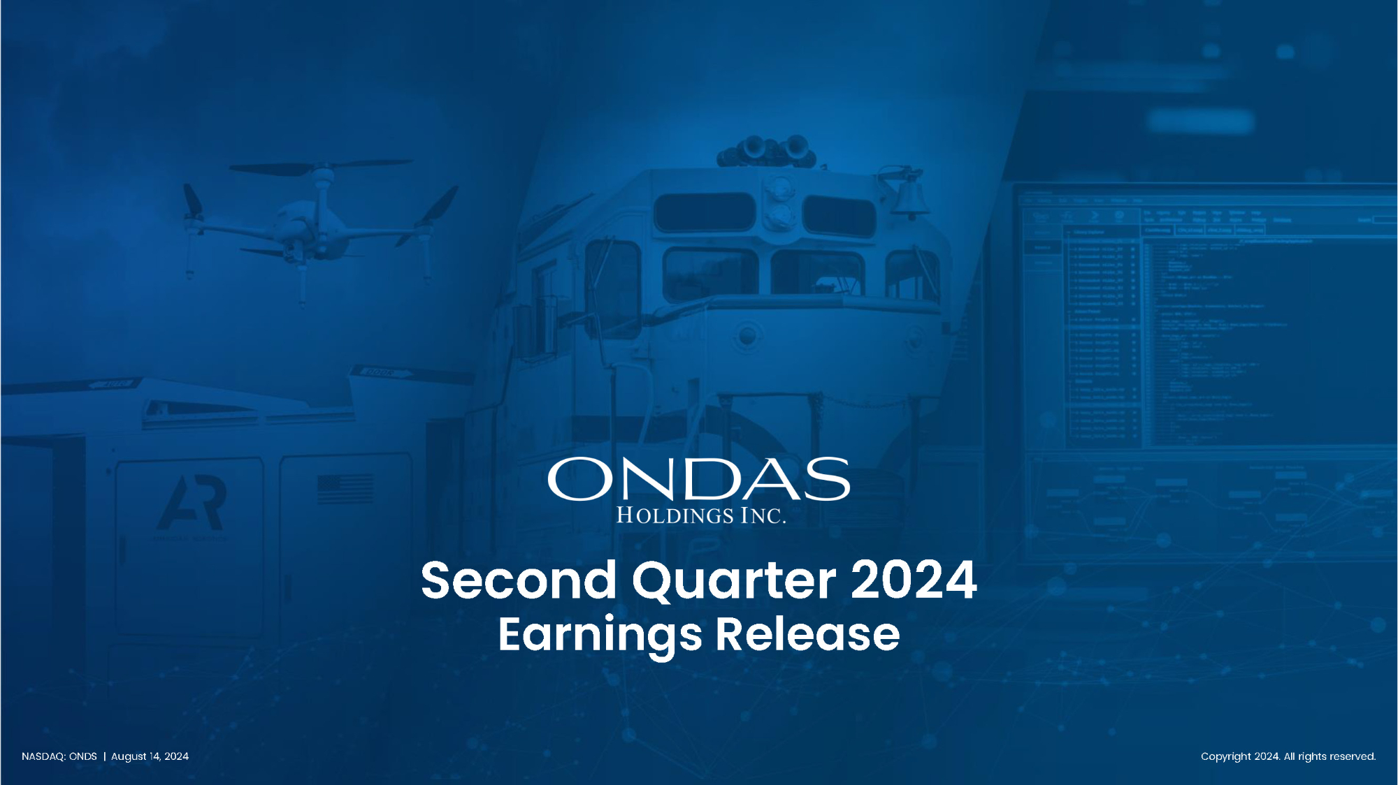 Secofid Qu6rter 2024 E6rfiifigs Rele6se版权所有2024。版权所有。NASDAQ:ONDS | 2024年8月14日