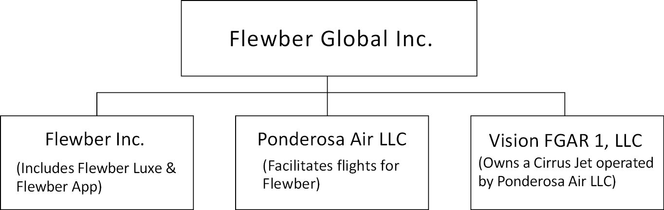 • Flewber LX,它为消费者提供使用传统的航程更长的私人飞机的途径,通过我们的技术以及与私人飞机所有者的合作关系,我们能够提供高水平的服务,这种服务是在不收取任何经纪人费用的情况下提供给客户的。