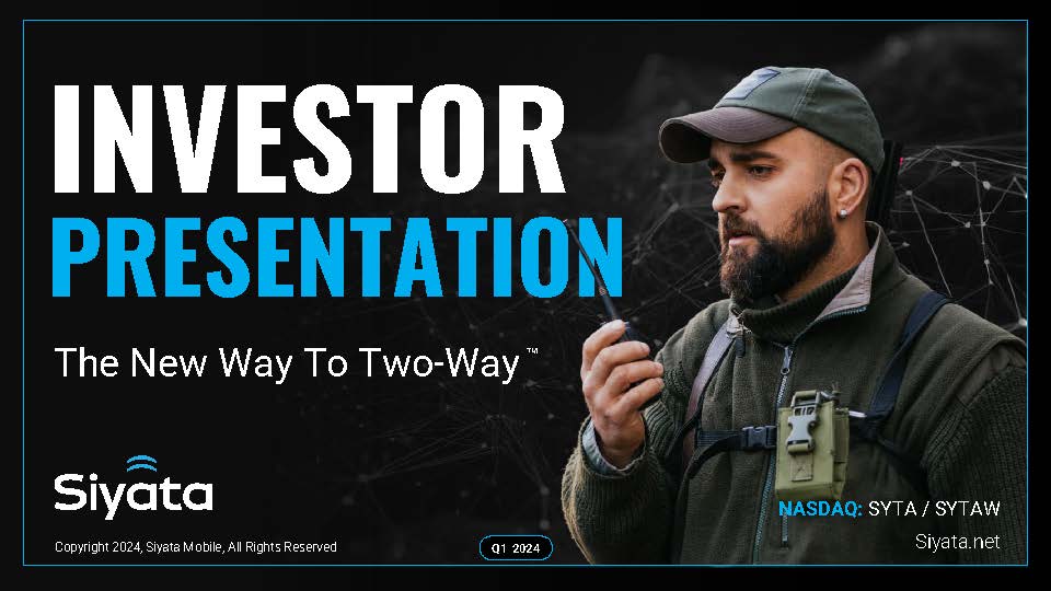 Investor Copyright 2024,Siyata Mobile,All Rights Reserved Q1 2024 NASDAQ:SYTA/SYTAW Siyata.net Presentation The New Way to Two-Way TM