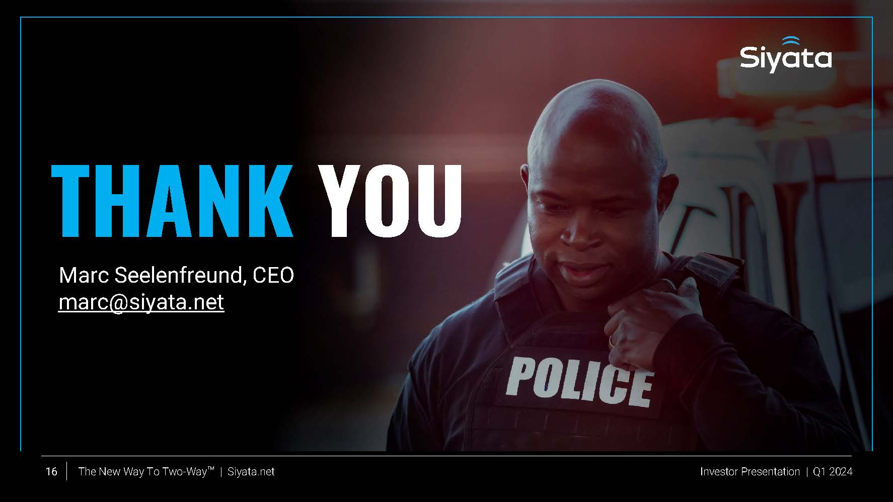 谢谢marc @ siyata.net16首席执行官Marc Seelenfreund The New Way to Two Way TM | Siyata.net投资者说明会| 2024年第一季度