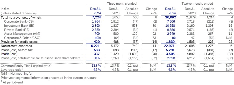 这份新闻稿中的数字是初步的,未经审计。德意志银行将于2025年3月13日刊发其2024年年报及20-F表格。