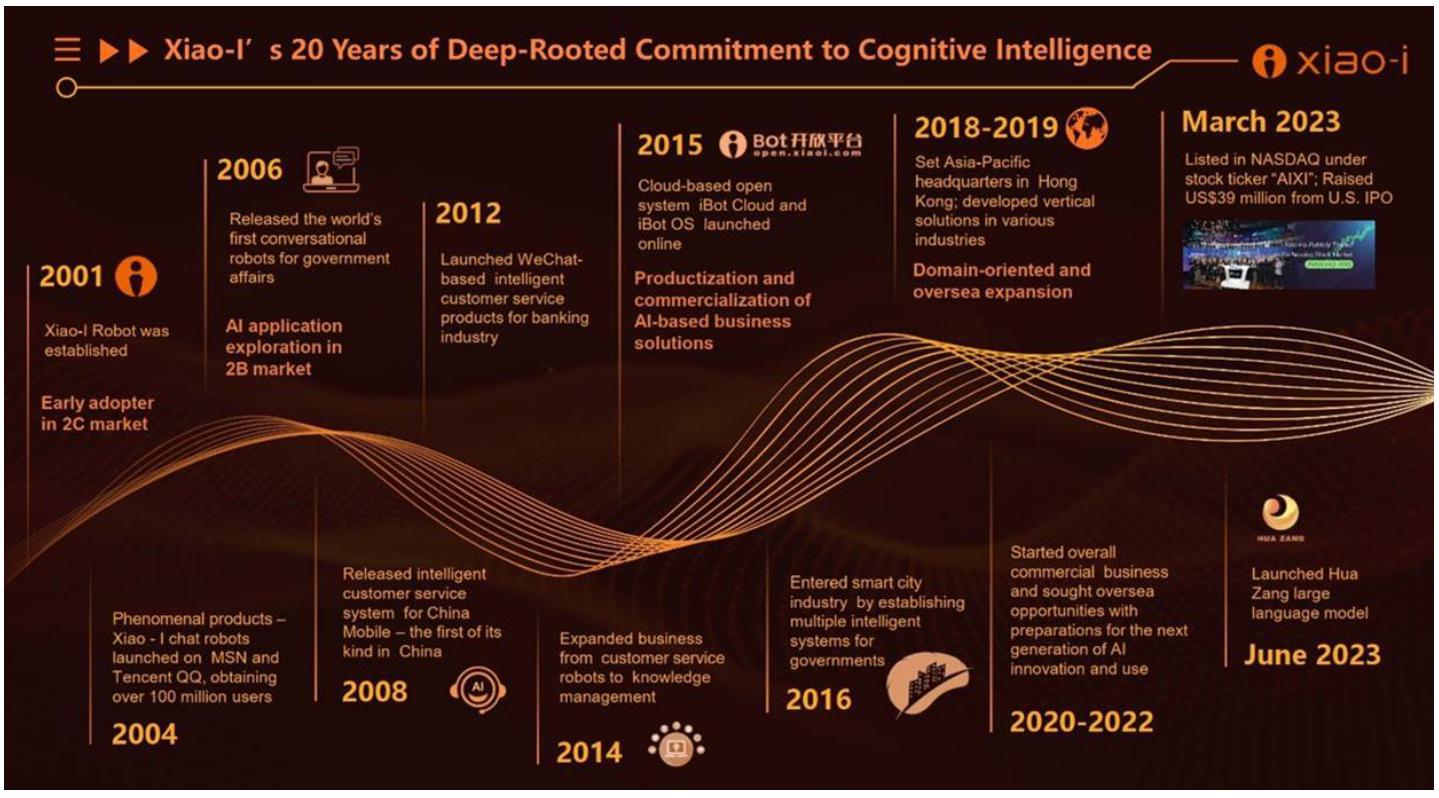 上海英思软件科技股份有限公司(“Incesoft”)成立于2001年。Incesoft建立了Xiaoi机器人品牌(中文:Xiaoi Robot),并开发了用于支持其消费者对消费者商业模式的AI技术。2009年,Incesoft将其商业模式从消费者对消费者转变为企业对企业。同时,Incesoft创始人创立上海小i机器人,VIE,获得了小i机器人品牌和Incesoft的核心AI技术。收购完成后,Incesoft于2012年根据中国法律通过在当地公司注册处注销注册而解散。自2009年以来,凭借在中国广泛的技术商业化、品牌认知度和创新文化,上海小i机器人已成为领先的人工智能(“AI”)公司。