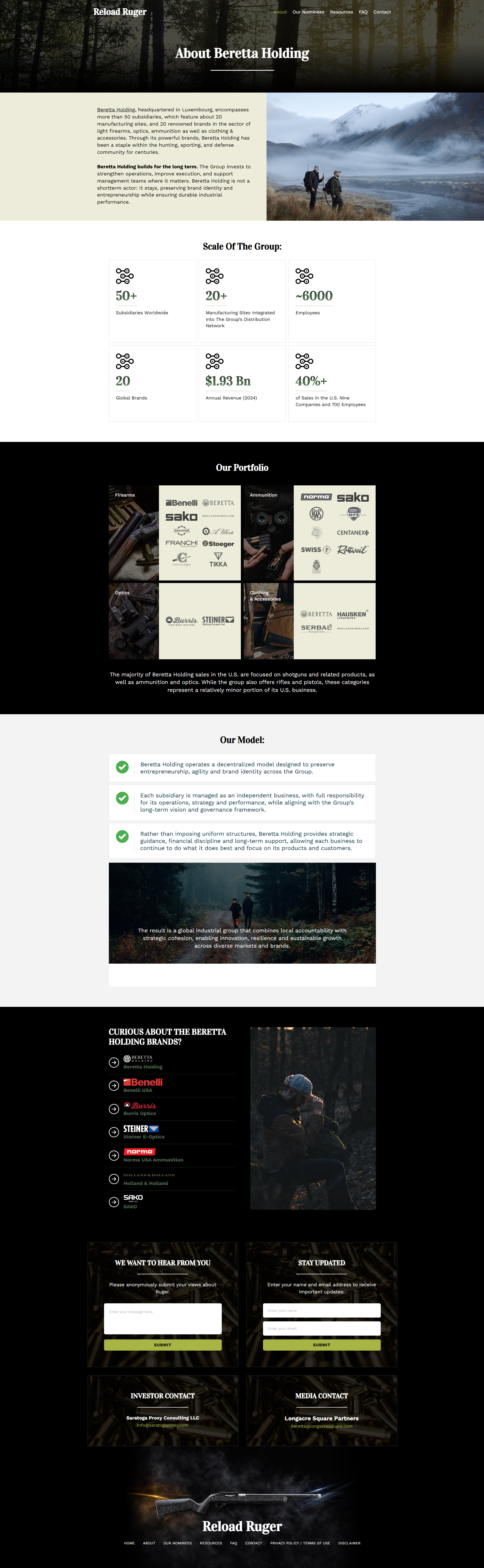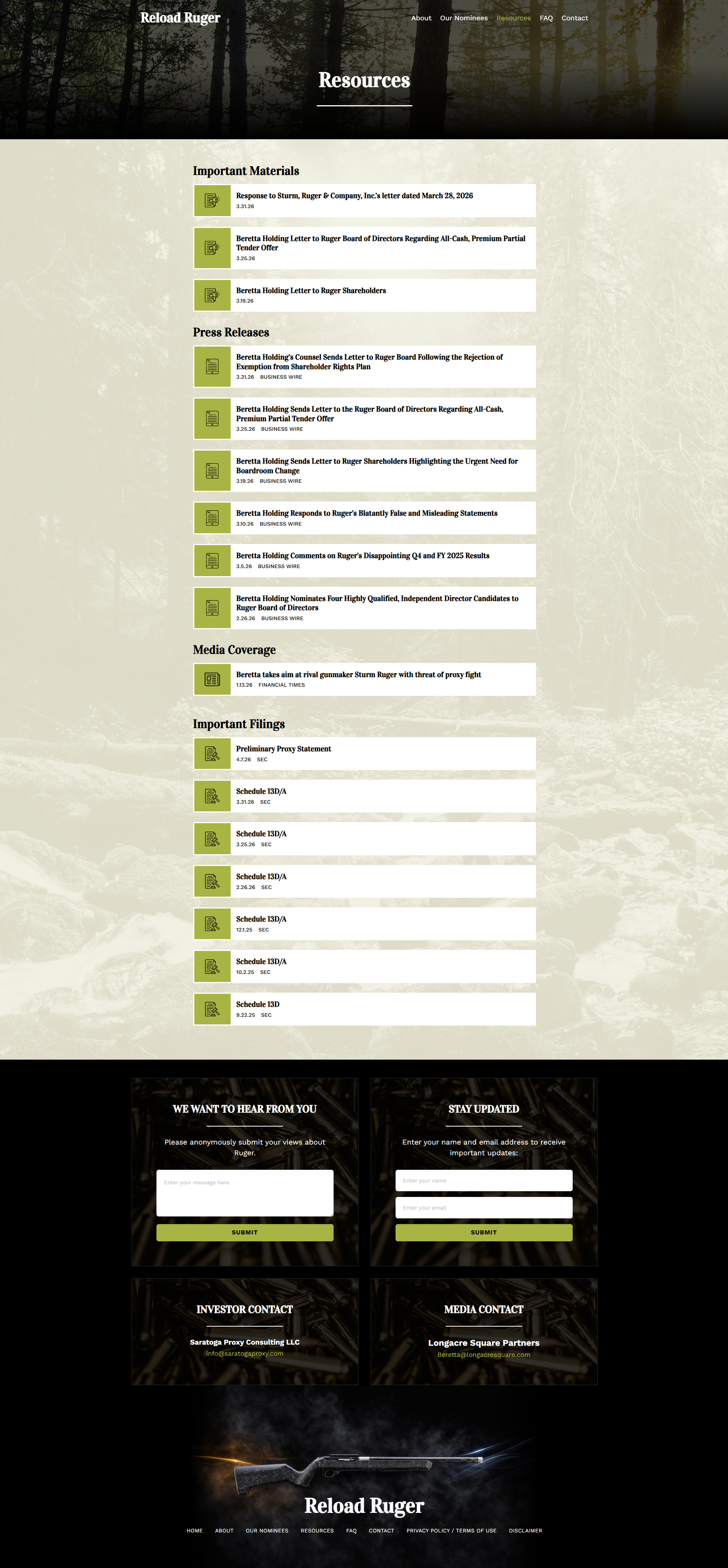 2026年4月8日,Beretta Holding在www.reloadRuger.com上发布了以下材料: