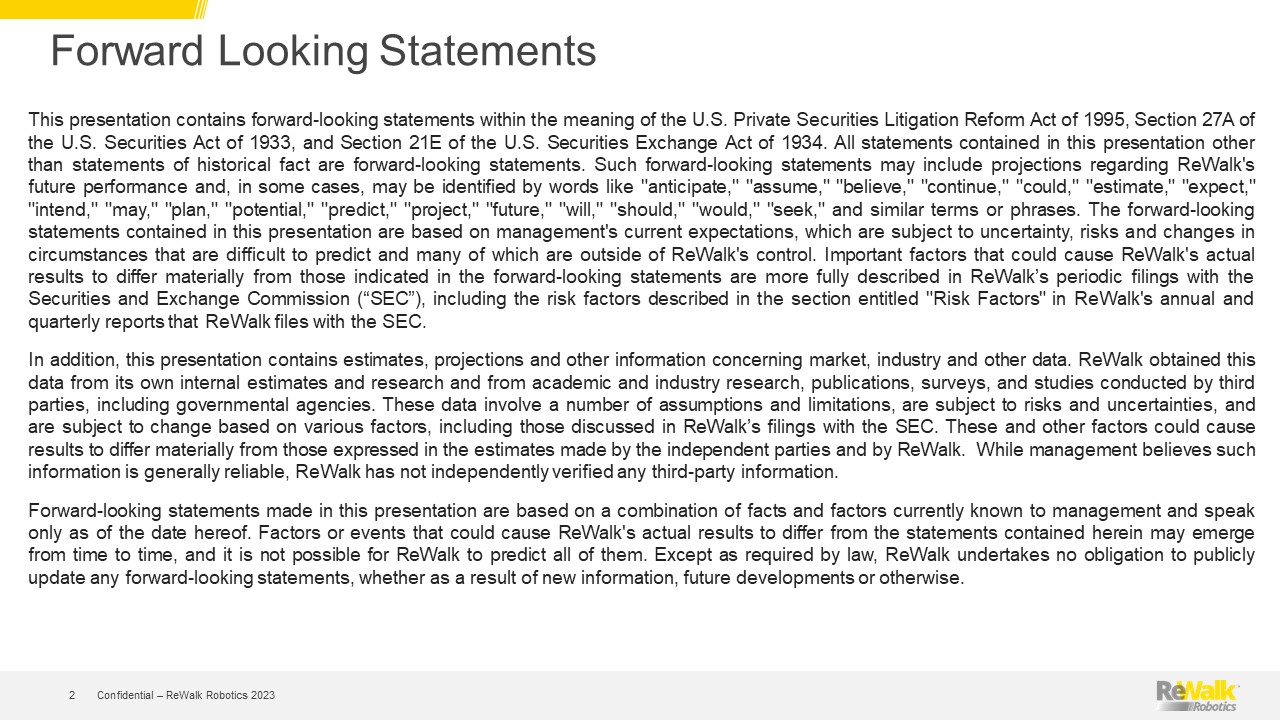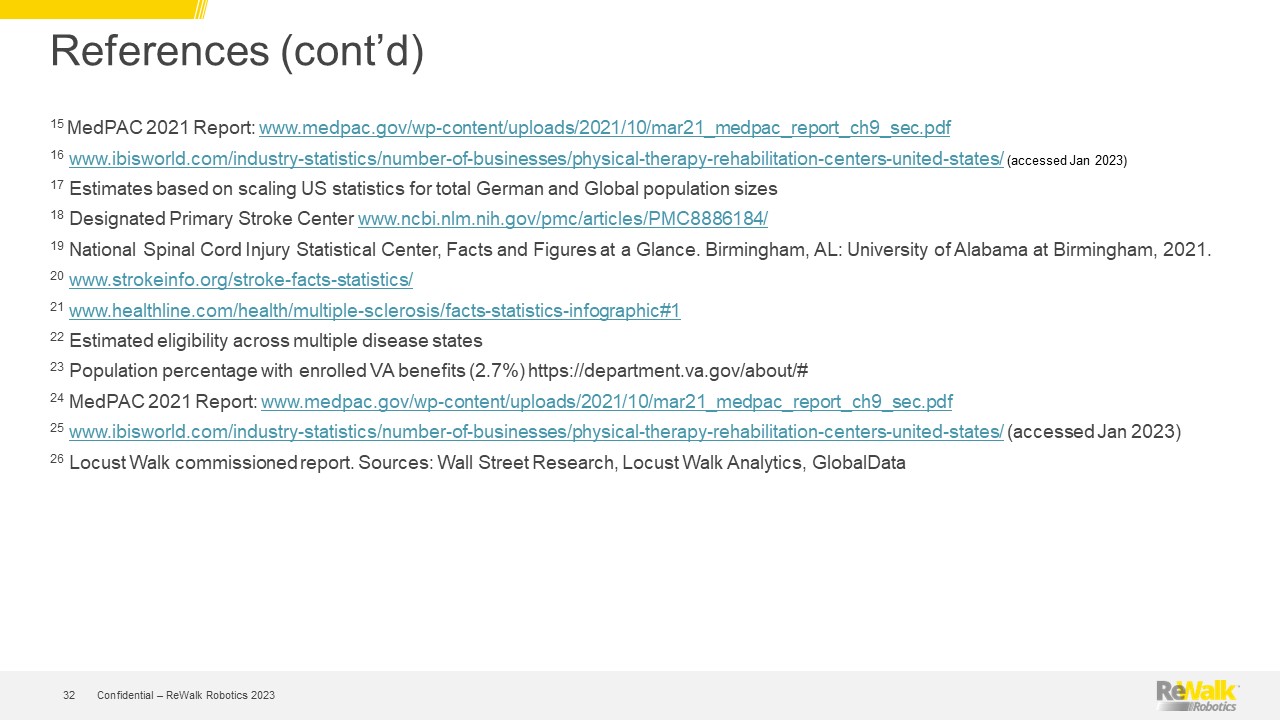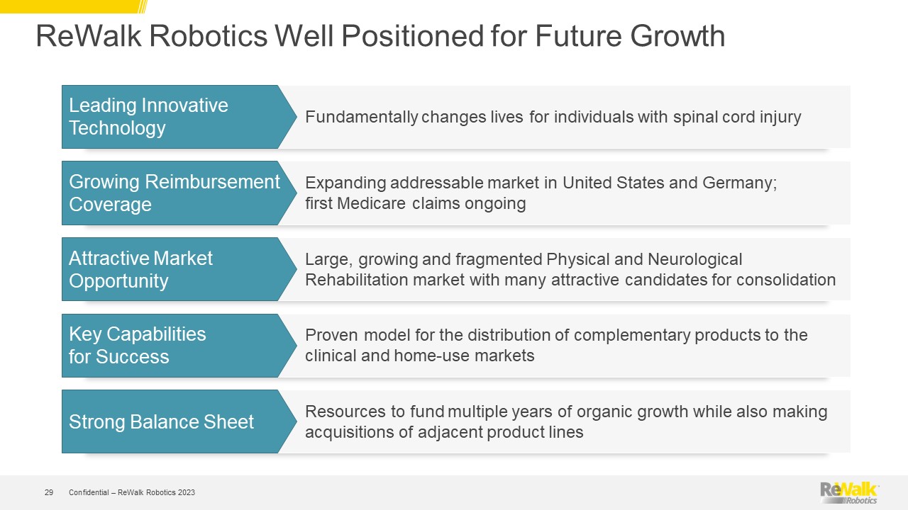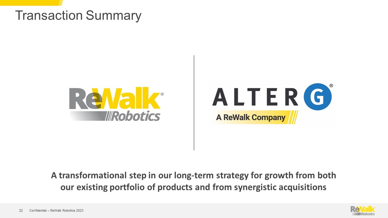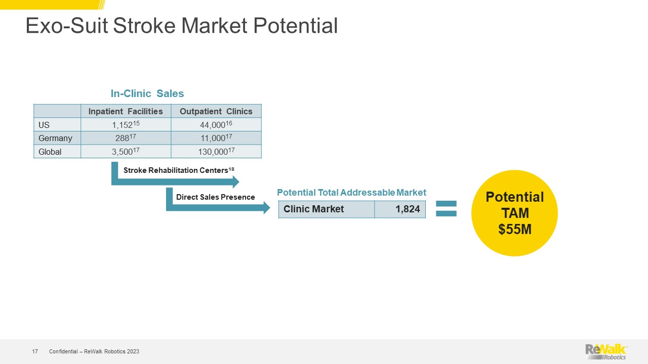 AlterG Market Potential Confidential – ReWalk Robotics 2023 Potential Total Addressable Market US 14,000 Germany 3,500 Global 40,000 Potential Global TAM $ 1.2B Inpatient Facilities Outpatient Clinics Professional & Elite Sports US 1,1521544,000161,400 Germany 2881711,00017350 Global 3,50017130,00017 4,200 Appropriate customer based on patient/athlete population and sufficient cap