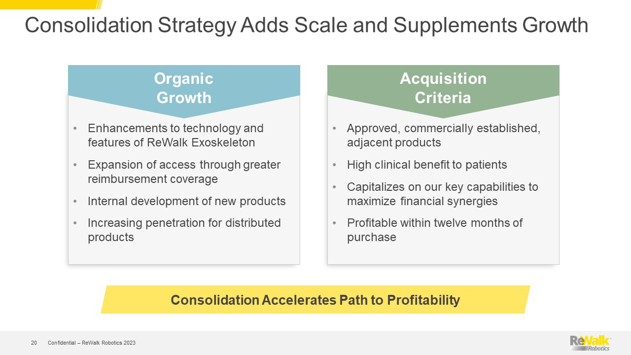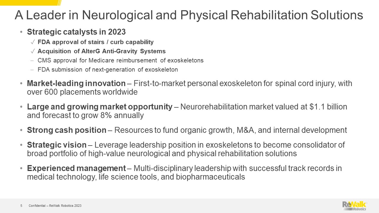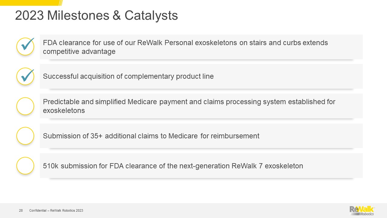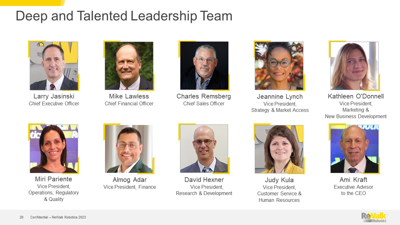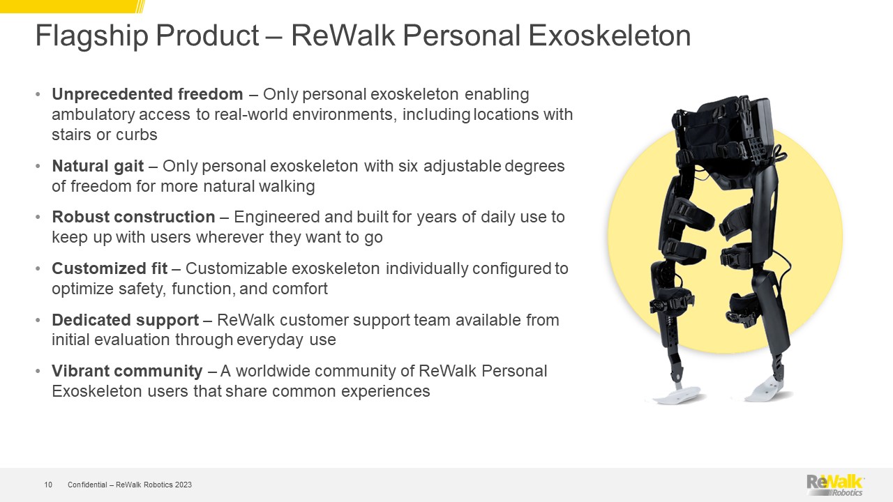AlterG Market Potential Confidential – ReWalk Robotics 2023 Potential Total Addressable Market US 14,000 Germany 3,500 Global 40,000 Potential Global TAM $ 1.2B Inpatient Facilities Outpatient Clinics Professional & Elite Sports US 1,1521544,000161,400 Germany 2881711,00017350 Global 3,50017130,00017 4,200 Appropriate customer based on patient/athlete population and sufficient cap