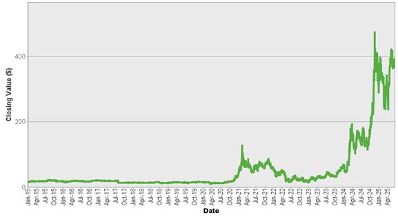 | MicroStrategy Incorporated –历史收盘价 2015年1月2日至2025年6月17日 |