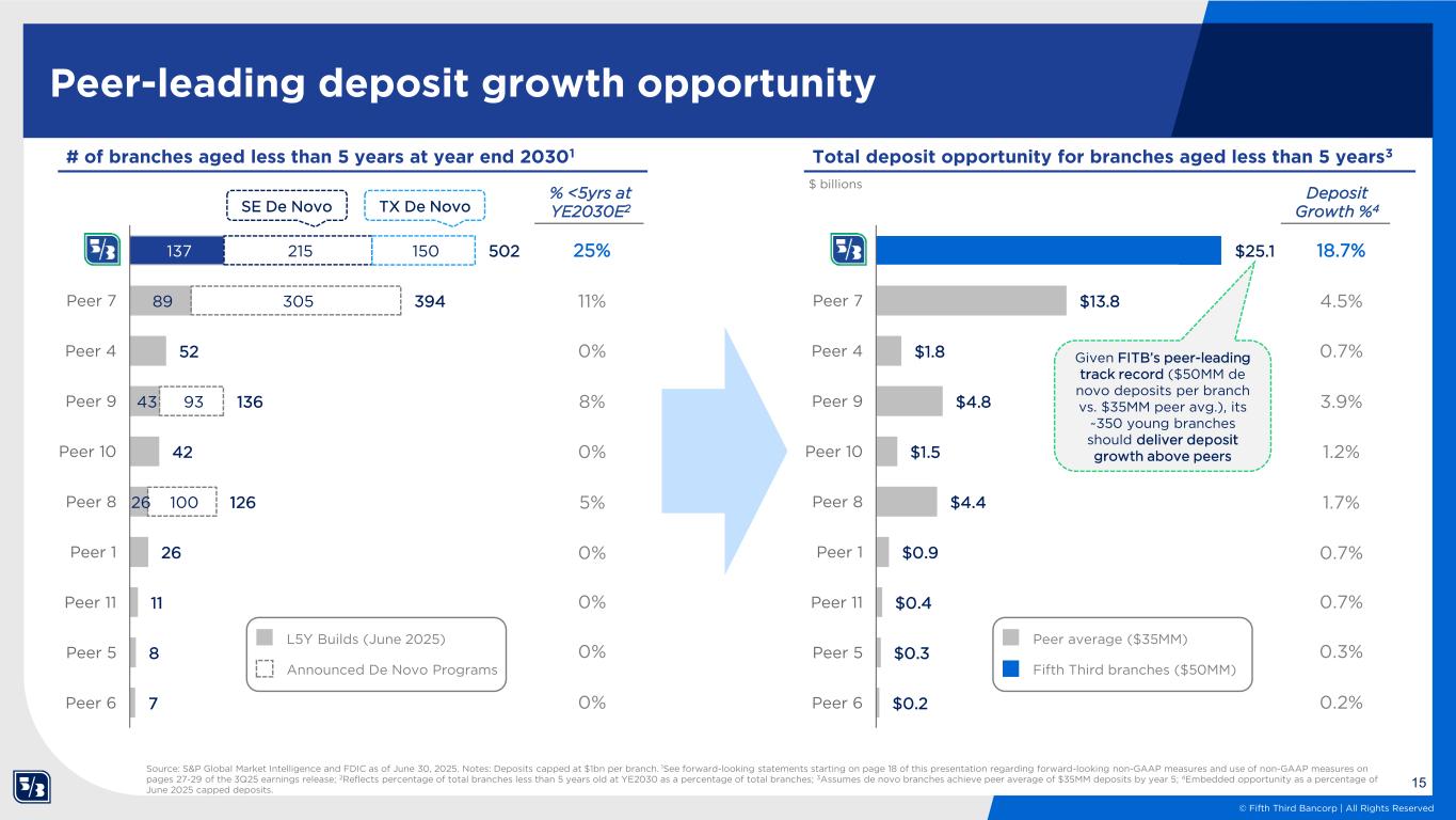 15©五三银行 |保留所有权利264389137100933052151507811261264213652394502对等6对等5对等11对等1对等8对等10对等9对等4对等7*20301年底5年以下分支机构的同业领先存款增长机会#资料来源:截至2025年6月30日的标普全球市场情报和FDIC。注:每家分行存款上限为10亿美元。1请参阅本演示文稿第18页开始的前瞻性陈述,内容涉及2025年第三季度收益发布第27-29页的前瞻性非GAAP衡量标准和非GAAP衡量标准的使用;2反映YE2030年成立不足5年的总分支机构占总分支机构的百分比;3假设从头分支机构到第5年实现同行平均35mm美元存款;4嵌入机会占2025年6月上限存款的百分比。% < 5yrs at YE2030E2 25% 11% 0% 8% 0% 5% 0% 0% 0% SE De Novo TX De Novo L5Y Builds(June 2025)announced De Novo Programs $ 0.2 $ 0.3 $ 0.4 $ 0.4 $ 0.9 $ 4.4 $ 1.5 $ 4.8 $ 1.8 $ 13.8 $ 25.1 Peer 6 Peer 5 Peer 11 Peer 1 Peer 8 Peer 10 Peer 9 Peer 4 Peer 7*5年以下分支机构的总存款机会3存款增长% 418.7% 4.5% 0.7% 3.9% 1.2% 1.7% 0.7% 0.7% 0.3% 0.2%鉴于FITB的同行领先业绩记录(每个分支机构的从头存款为5000万美元,而同行平均存款为3500万美元),其约350家年轻分支机构的存款增长应高于同行同行平均水平(35mm美元)五三银行分支机构(50mm美元)数十亿美元