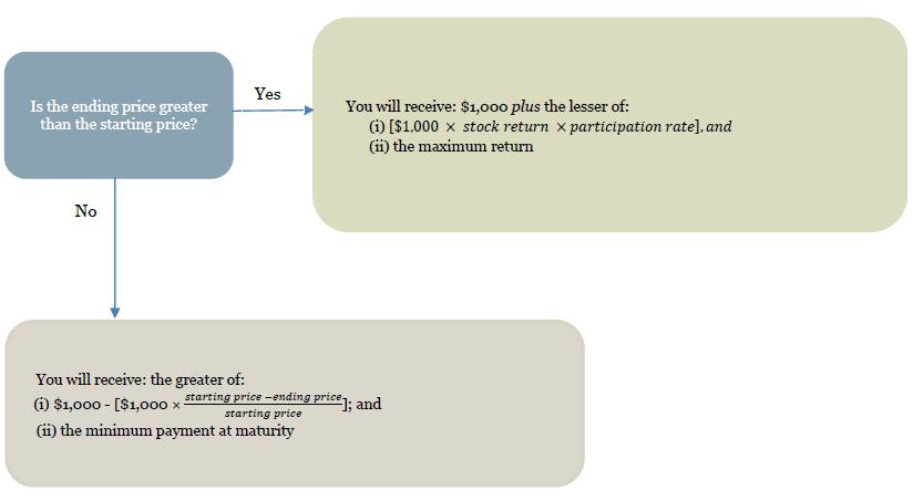 到期时,将按以下方式确定每1000美元面值证券的到期付款金额: ●若期末价格大于起始价: 1,000美元加上以下两者中的较小者: (ii)最大回报 ●若期末价格低于起始价:以下两者中的较大者: