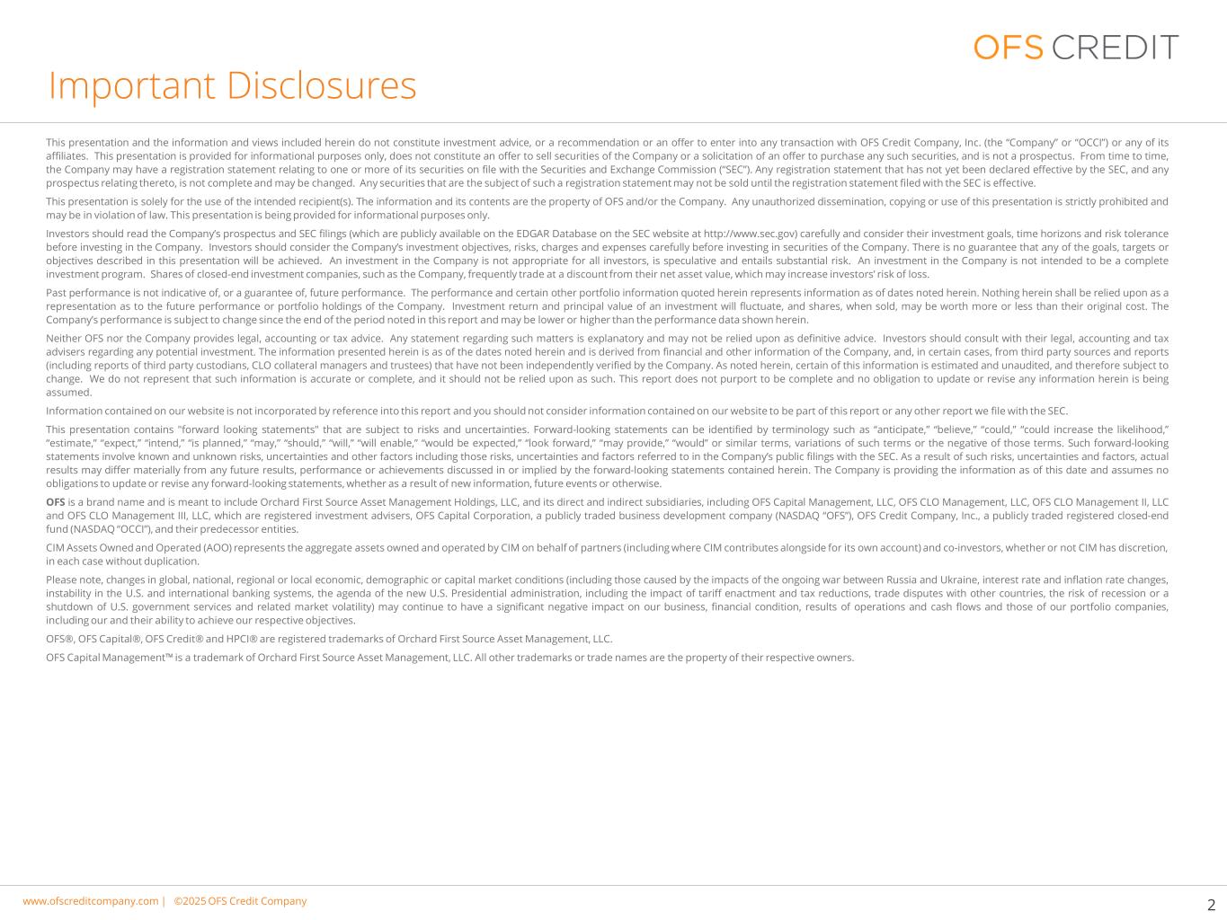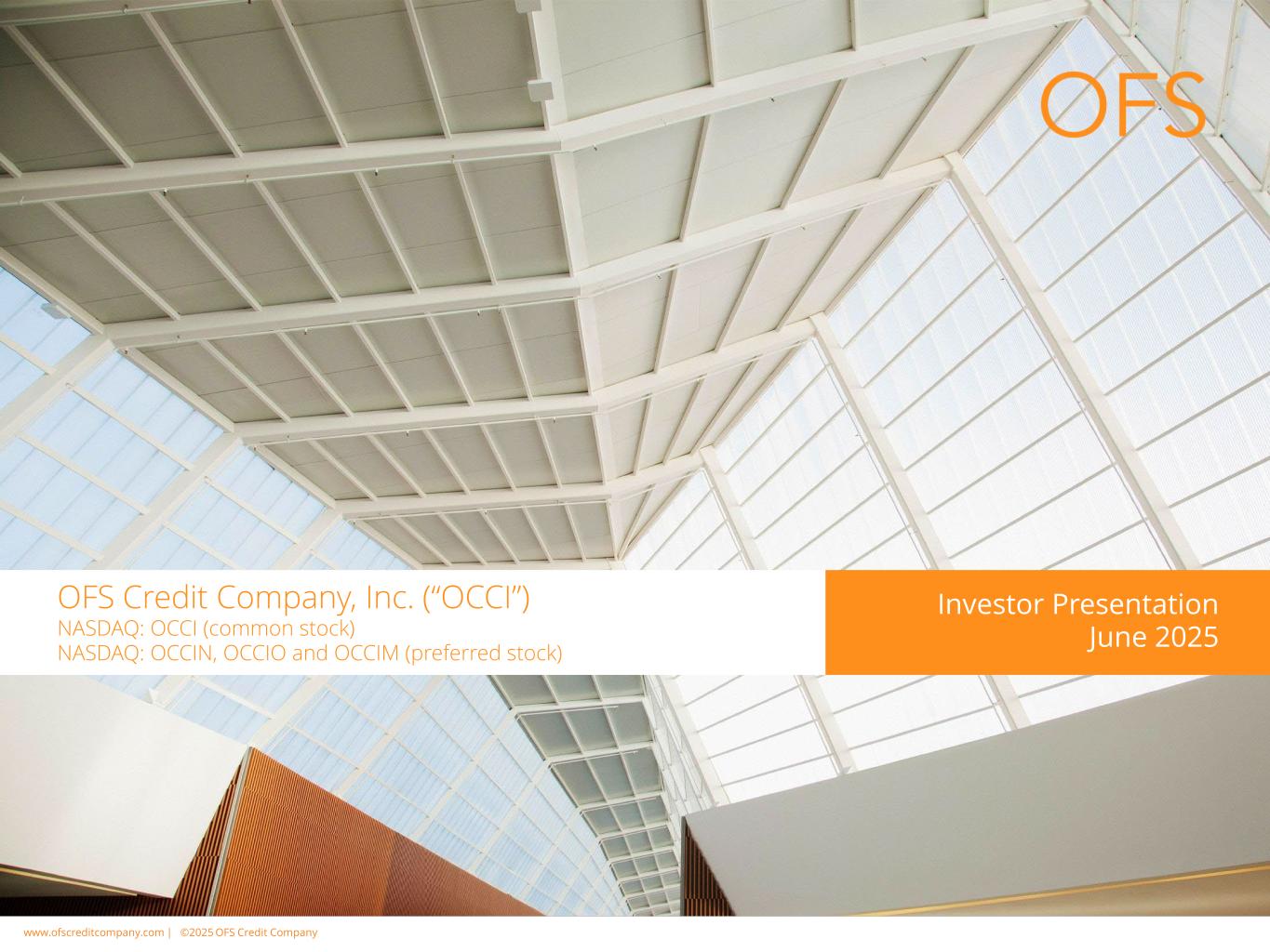 www.cimgroup.com |©2018年CIM集团|贸易机密/机密信息www.ofscreditcompany.com |©2025 OFS Credit公司OFS Credit Company,Inc.(“OCCI”)NASDAQ:OCCI(普通股)NASDAQ:OCCIN、OCCIO和OCCIM(优先股)投资者说明会2025年6月