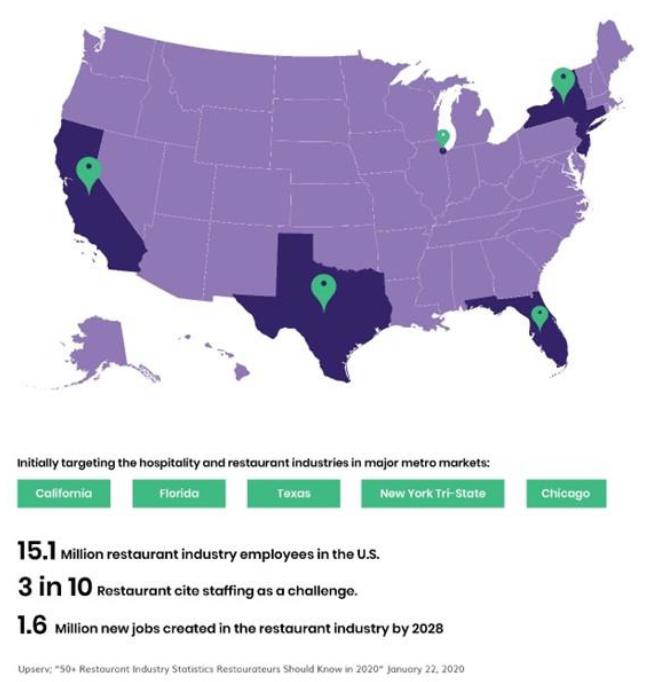从2020年1月开始,我们采用传统的人事服务业务模式,并结合发达的技术,以解决餐饮和酒店业服务不足的市场,这些市场主要由工资较低且流动率高的员工组成。同时,我们继续努力将我们的服务扩展到其他行业,这些行业以临时或兼职方式使用高薪员工,包括医疗人员行业。我们进入市场的方法是使用内部销售人员直接向客户营销我们的服务,以管理他们的人力资本需求,并与企业协会建立战略关系以收集WSE。在新冠病毒大流行之前,这种方法是有效的,并导致了大幅增长。然而,由于我们核心餐厅和酒店市场的就业人数减少,新冠病毒大流行改变了HCM的格局。
