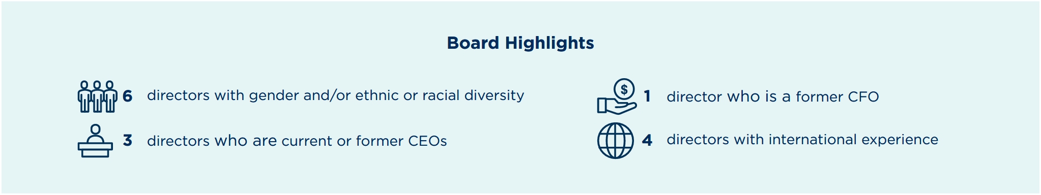 | 1. | 选举下列八名董事候选人进入董事会,任期至2026年年度股东大会。 | ||||||